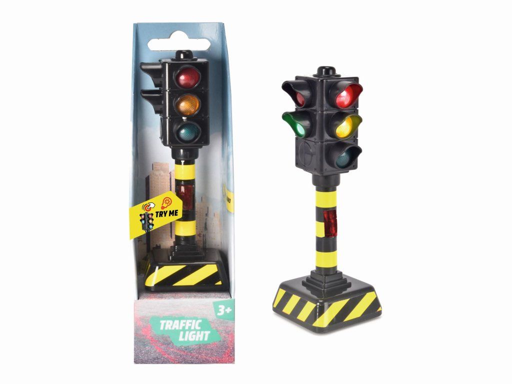 Dopravní semafor s automatickou výměnou světel a zvukem. Výška 12 cm.