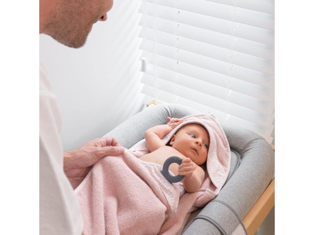 Heboučký ručník s kapucí Doomoo Dry&Play není jen tak obyčejný ručník. Díky vychytávce v podobě silikonového kolečka si ho rodiče snadno připevní kolem krku na své tělo, získají tak volné ruce pro pohodlné a bezpečné mytí dítěte, a navíc jsou chráněni před cákáním. Po koupeli dítě v náručí pohodlně zabalí do ručníku a silikonové kolečko poslouží jako kousátko.