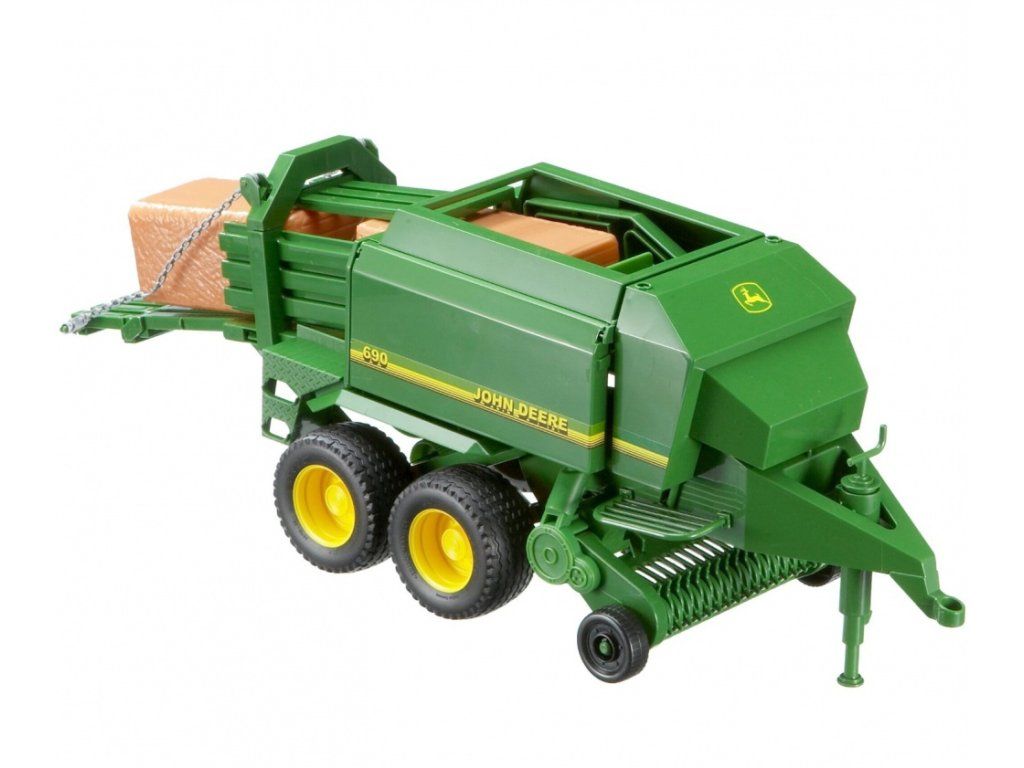Farmář - lis na balíky John Deere. Tento lis na balíky se pyšní klasickým zelenožlutým designem značky John Deere. Je vyroben z vysoce kvalitního a odolného plastu. Sklopná noha zajišťuje celému vozidlu dokonalou stabilitu a držení. Prostřednictvím záklopky je možné také nahlédnout na lisovací mechaniku. Při jízdě jsou ven automaticky transportovány dva balíky. Dopravní pás je vybaven dvěma sklopnými řetězy. Tento model lisu na balíky se hodí ke všem typům traktorů z Profi série. Je vhodný pro interiér i exteriér. Rozměry: 390 x 160 x 140 mm. Věk: 3+