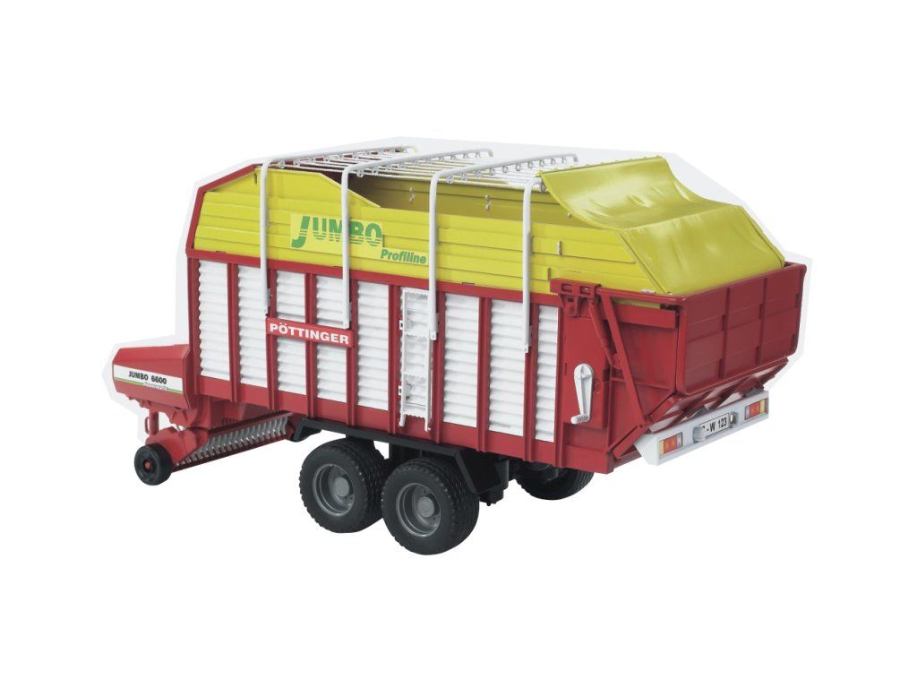 Farmer - Jumbo Profiline přívěs na přepravu krmiva 1:16. Tento přívěs na přepravu krmiva se pyšní nejen skvělým barevným designem, ale především svými funkcemi. Je vybaven sklopnou opěrnou nohou, která slouží pro dokonalou stabilitu celého vozidla. Boční stěny lze otevřít, navíc je zde umístěn žebřík. Pomocná madla na střeše lze odejmout, zadní část lze pak bez problému otevřít. Vozidlo je vybaveno pevnými profilovými pneumatikami, které se přizpůsobí i náročnějšímu terénu. Tento automobil lze snadno kombinovat se všemi traktory Profi série BRUDER. Je vyroben z vysoce odolného a kvalitního plastu. Vhodný pro interiér i exteriér. Rozměry: 540 x 240 x 180 mm