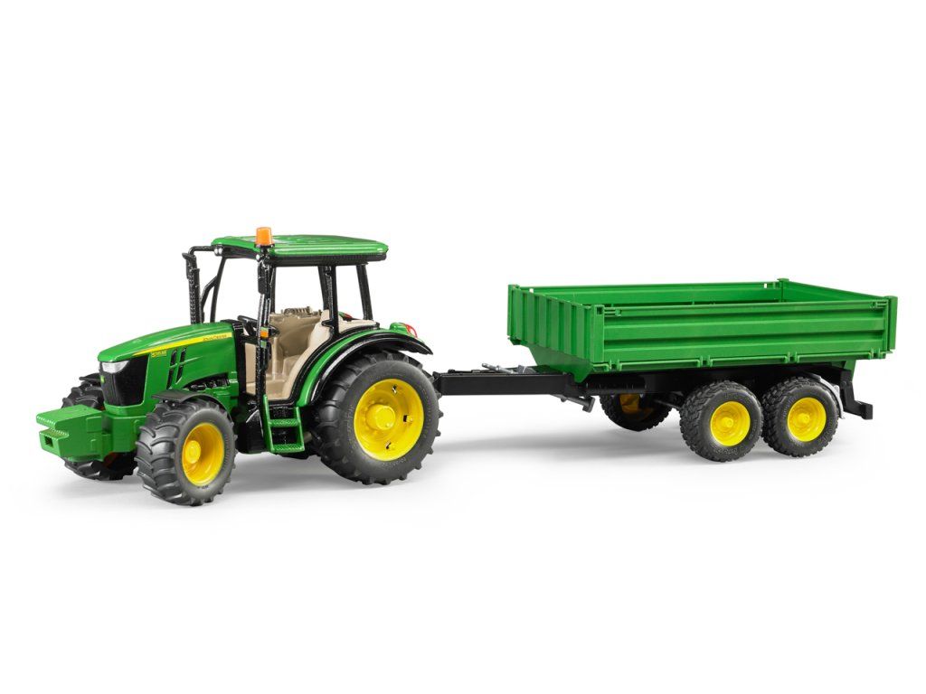 Model traktoru John Deere 5115 v měřítku 1:16 je vyroben z kvalitního ABS plastu. Traktor disponuje držákem pro připojení čelního nakladače, závěsným zařízením či odnímatelným předním závažím. Ovládání je řešeno prodlouženým volantem, který snadno nainstalujete prostřednictvím posuvné střechy. Každý malý řidič bude nadšený z odpojitelného valníku, který je vybaven sklápěcí plošinou, sklopnými bočnicemi a podpěrou pro maximální stabilitu. Traktor i valník mají profilové pneumatiky, které zvládnou i náročnější terén. Země původu: Německo. Věk: 3+