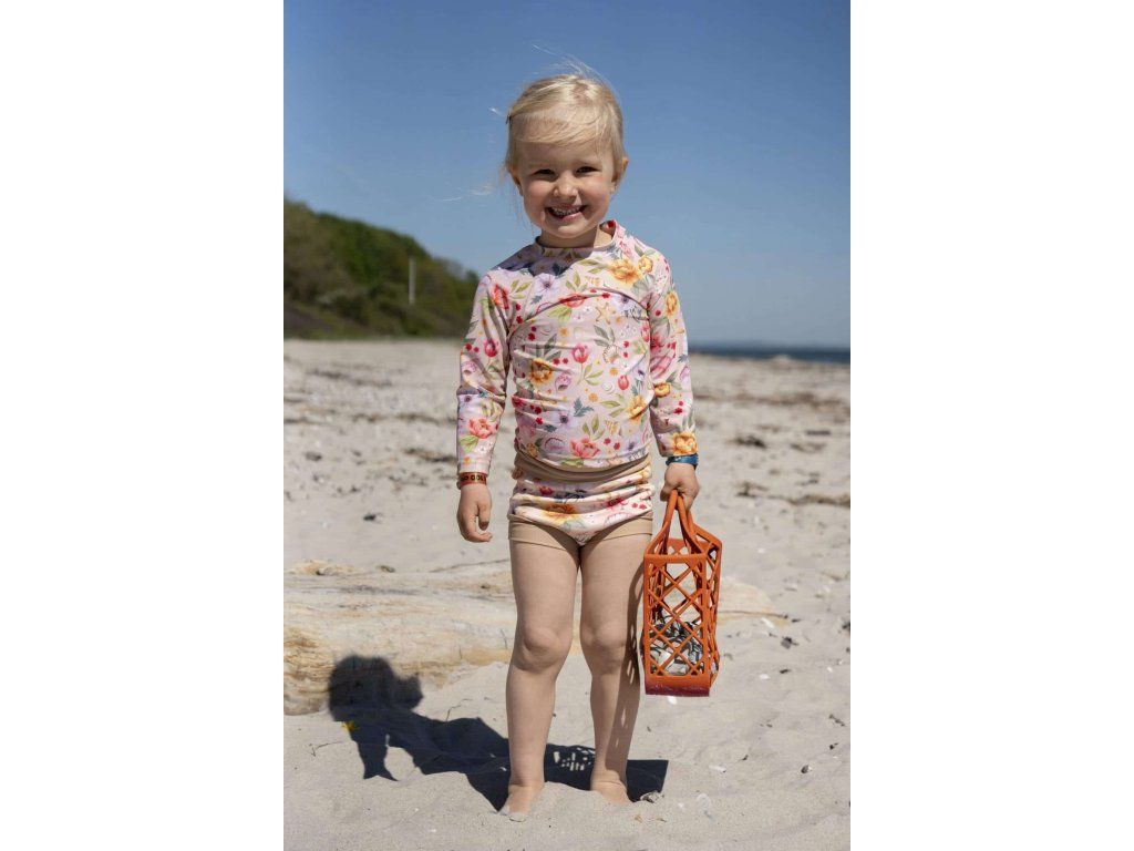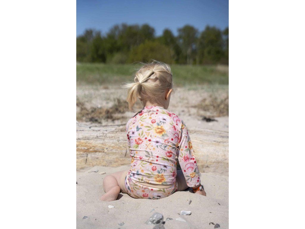 Všimněte si, jak potisk „Oceánský květ“ zachycuje poklady, které děti rády sbírají a vždy si je přinášejí domů. Každý okvětní lístek a každý malý detail je ručně kreslený jemnými tahy akvarelu, čímž se každý pohled promění v rozkošné dobrodružství.
