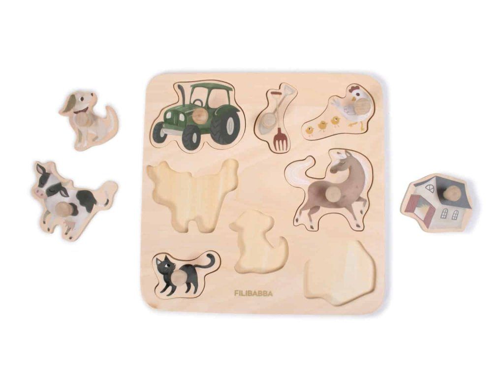Dřevěné farmářské puzzle je vyrobeno ze dřeva schváleného FSC a lze jej snadno otřít vlhkým hadříkem.