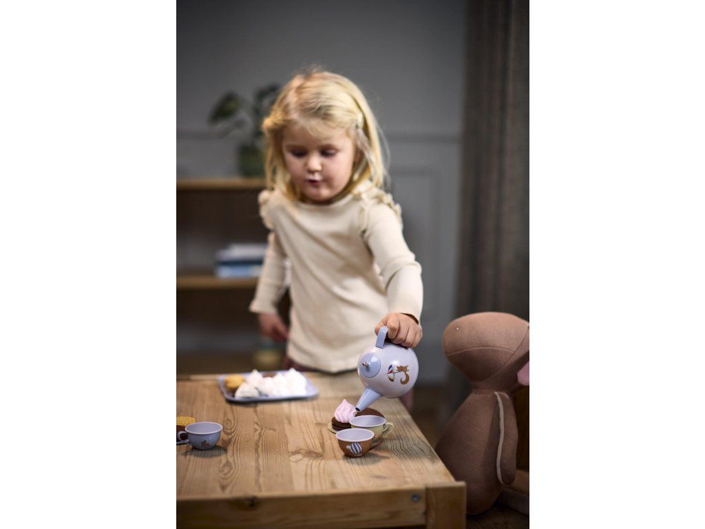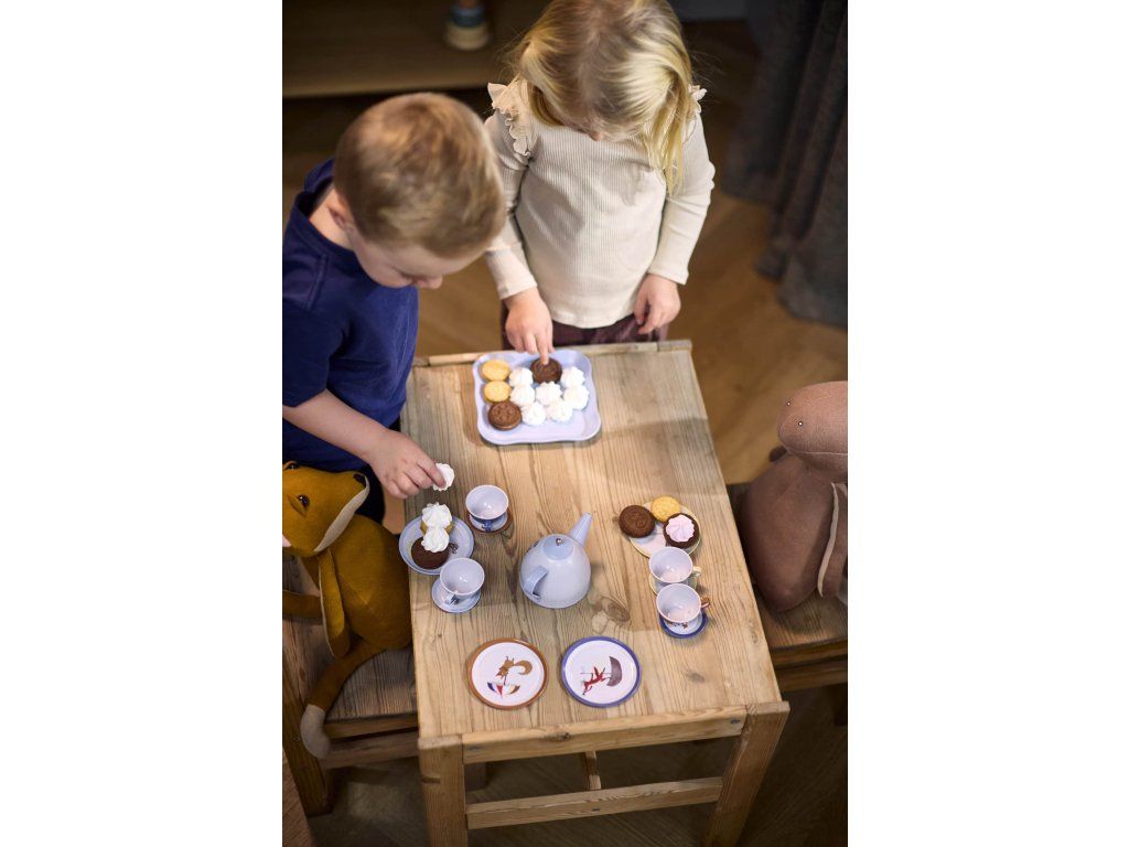 Každé dítě se potěší z uspořádání čajového dýchánku! S touto půvabnou čajovou sadou od FILIBABBA mohou pozvat na zábavu své oblíbené plyšové kamarády, panenky nebo dokonce mámu a tátu. Sada je navržena tak, aby podněcovala fantazii a hru na role, přinášela klasickou zábavu do života a zároveň rozvíjela kreativitu, sociální dovednosti a schopnost vyprávět příběhy.