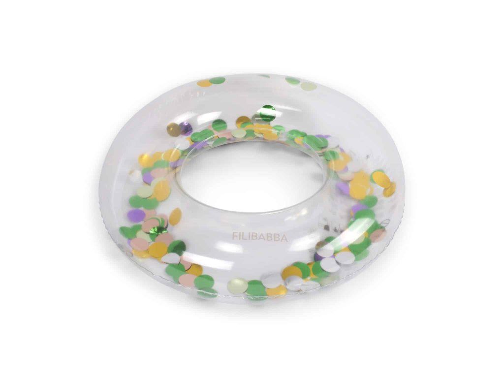S plaveckým kruhem FILIBABBA s třpytivými barevnými konfetami bude váš výlet na pláž nebo na koupaliště ještě příjemnější, protože s kruhem se vaše dítě může opravdu cákat.