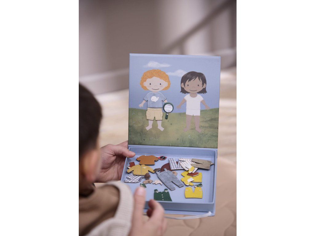 V této fantastické magnetické hře pomůžete dvěma dětem připravit se na jejich dobrodružství. Déšť nebo slunce, díky množství krásného oblečení a doplňků jsou dobře vybaveny na každou výpravu.