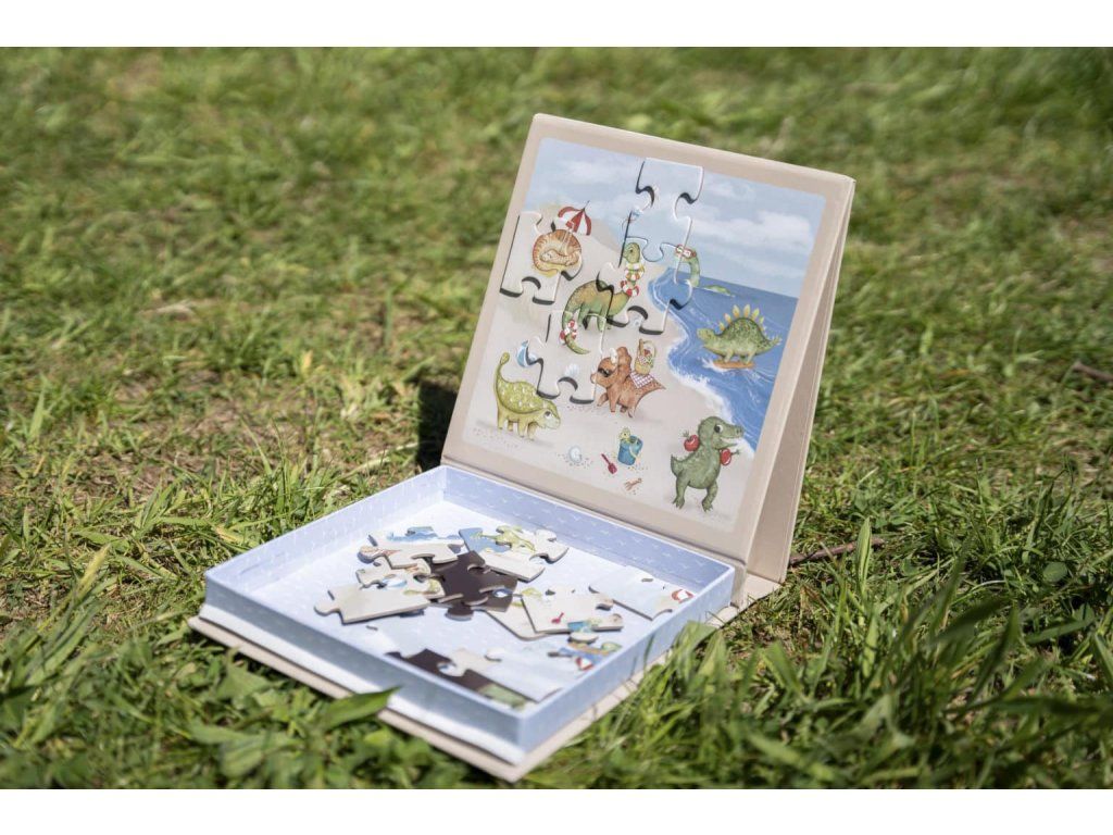 Praktické magnetické puzzle s barevnými, ručně kreslenými dinosaury trénuje jemnou motoriku vašeho dítěte a pomáhá uklidnit se po náročném dni.