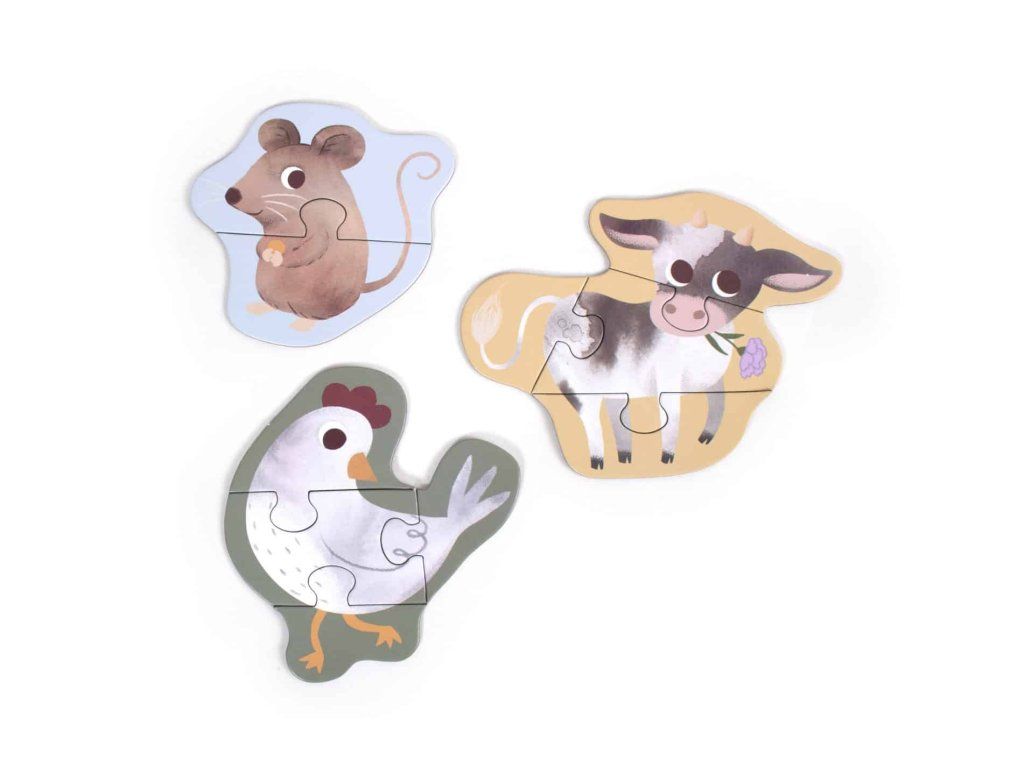 Sada puzzle obsahuje tři roztomilé puzzle s postupně se zvyšujícím počtem dílků, které budou výzvou a potěší vaše dítě.