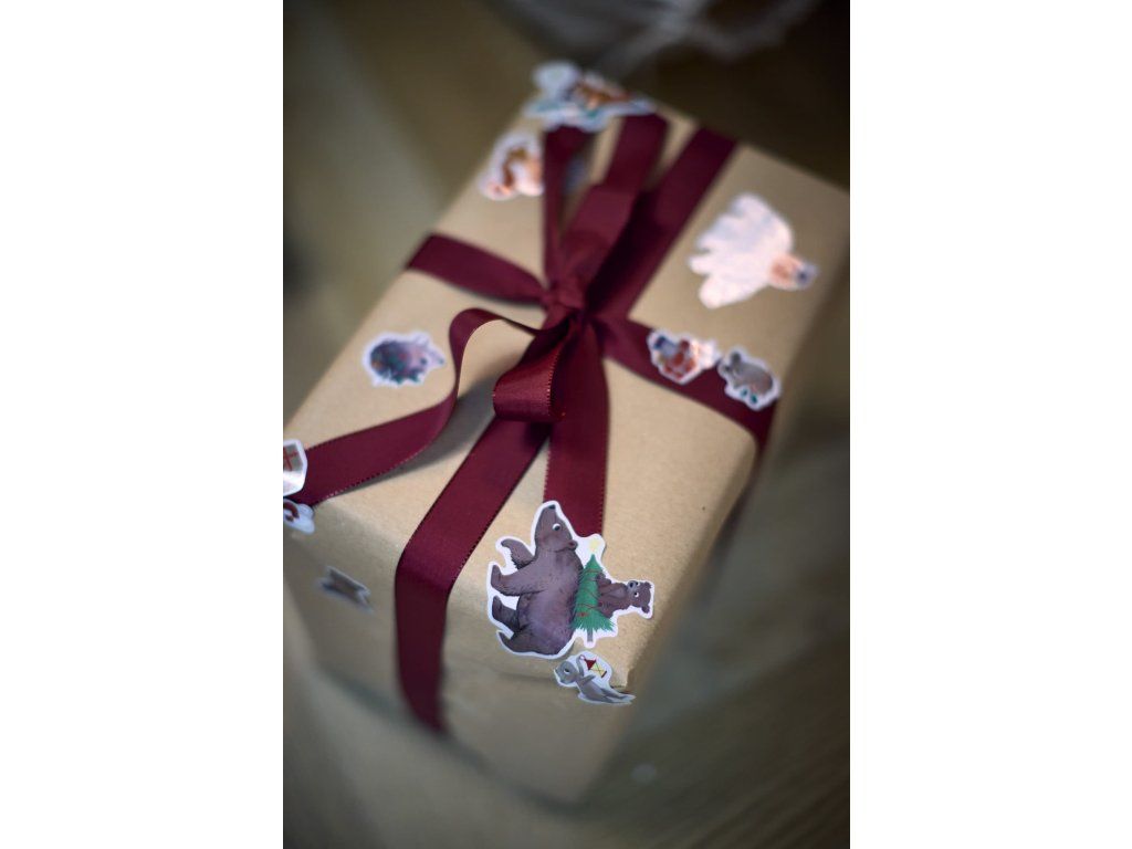 Okenní nálepky zobrazují rozkošná lesní zvířátka spolu s klasickými svátečními prvky, přičemž přenášejí útulné kouzlo oblíbené estetické linie FILIBABBA na vaše okna.