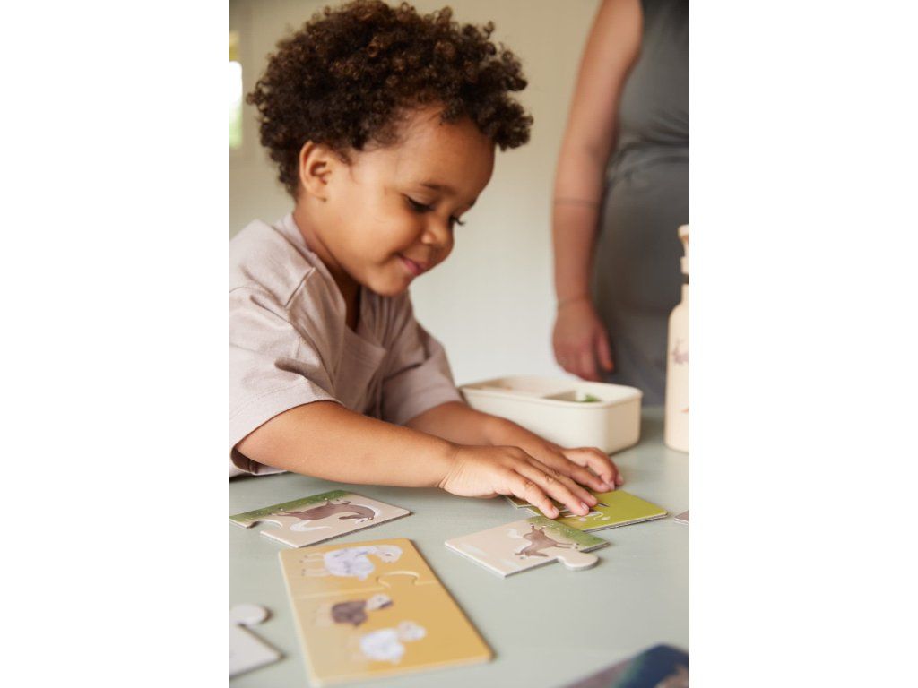Vaše nová sada puzzle obsahuje deset jemných puzzle se dvěma velkými dílky. Vychutnejte si barevné ručně kreslené ilustrace zobrazující něžné zvířecí rodiče a jejich roztomilé děti.