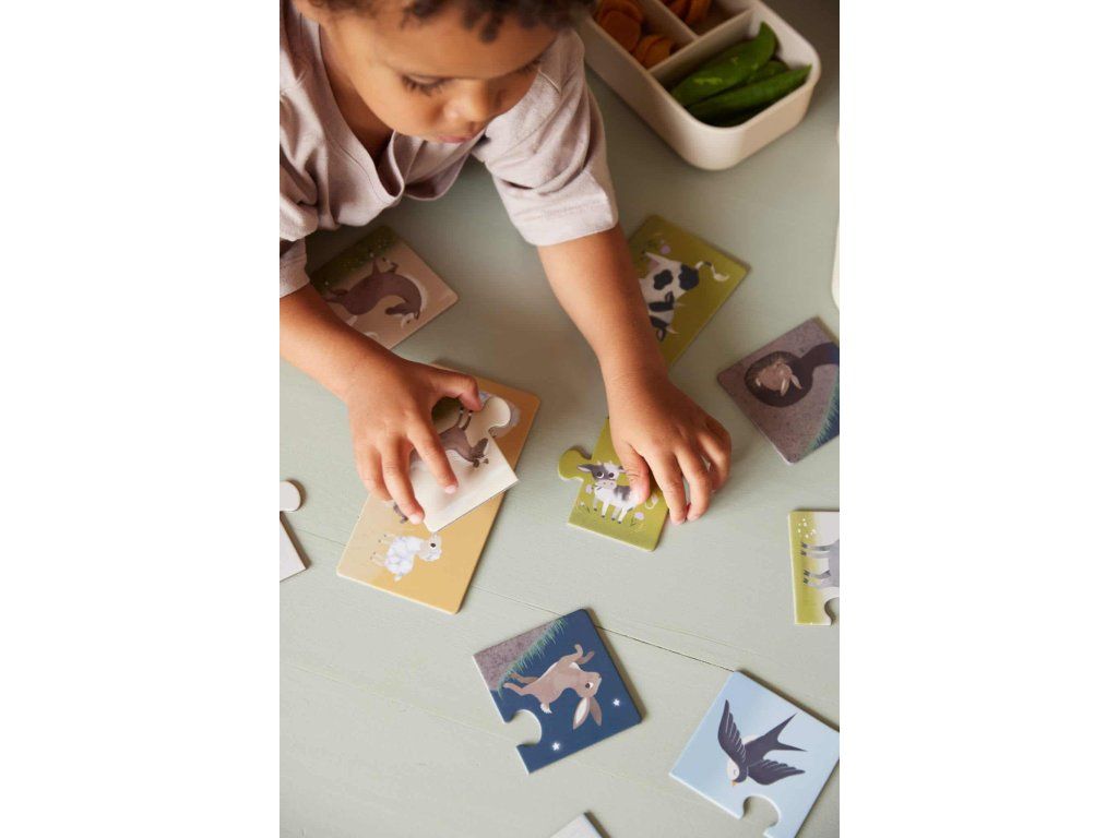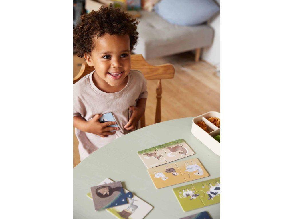 Zlepšete jemné motorické dovednosti vašeho děťátka a zároveň prozkoumejte více o zvířátkách na farmě. Některá mláďata vypadají stejně jako jejich rodiče a některá vypadají úplně jinak.