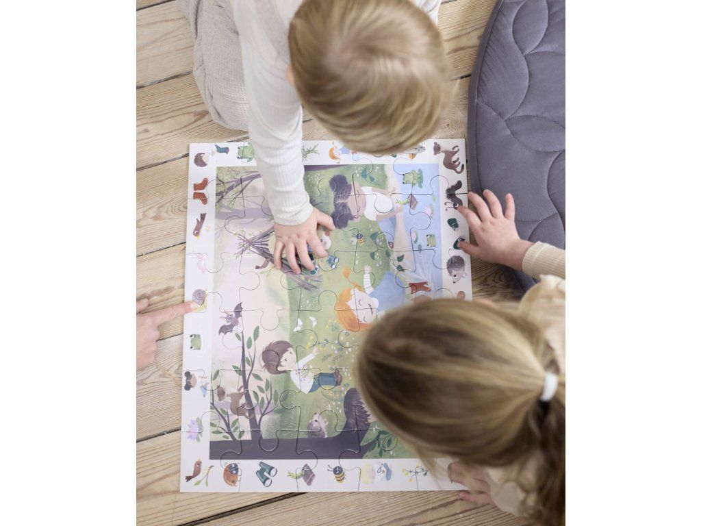 S tímto velkým puzzle s 30 dílky, které zobrazuje ty nejroztomilejší lesní dobrodruhy, zábava pokračuje, i když položíte poslední dílek na místo.
