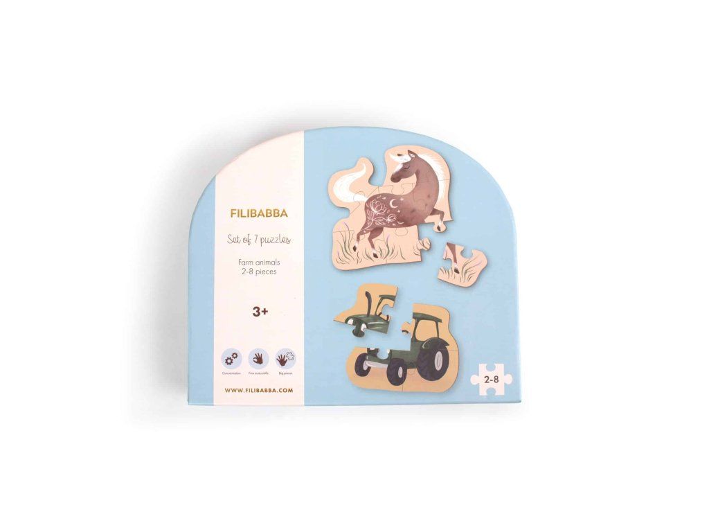 Nová sada hlavolamů obsahuje sedm roztomilých skládaček s narůstajícím počtem dílků, které budou výzvou a potěší vaše dítě. Začněte s jednoduchým 2dílným hlavolamem a uvidíte tu radost a sebedůvěru, když vaše dítě uspěje s největším 8dílným hlavolamem.