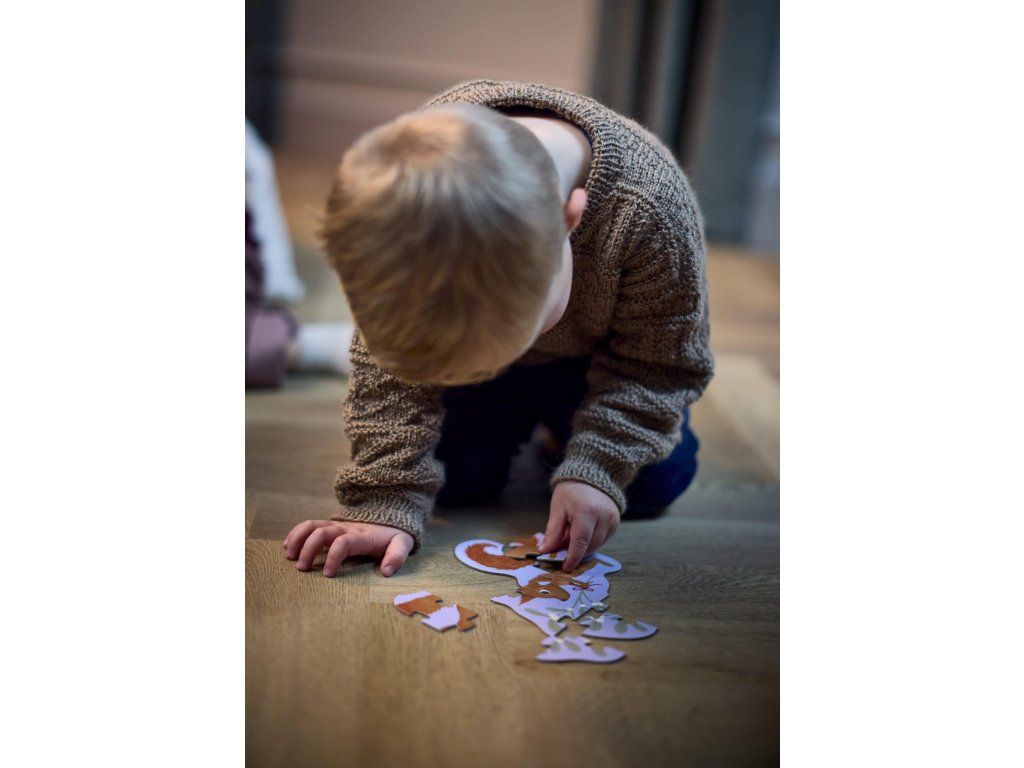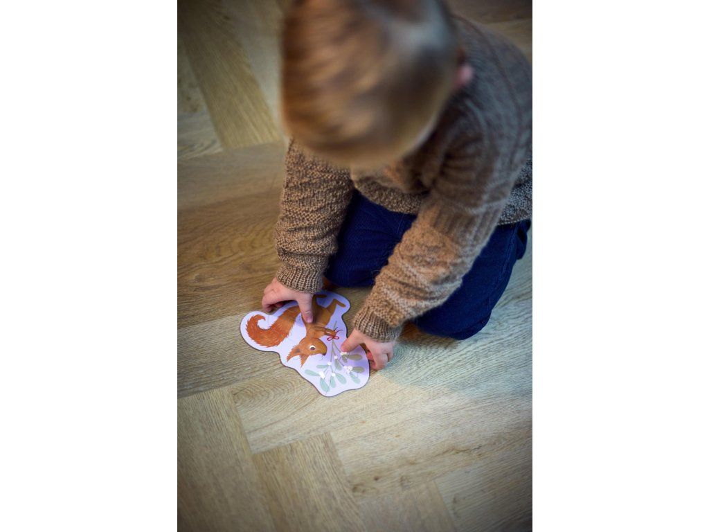 Nic není krásnější než radost z dokončení puzzle! Tato rozkošná sada představuje oblíbené lesní kamarády značky FILIBABBA – zajíce, veverku, lišku a jelena – oživené ve čtyřech zimně laděných puzzle. Každé puzzle má 5, 6, 7 a 8 velkých dílků, ideálních pro malé ručičky, a pomáhá rozvíjet jemnou motoriku.