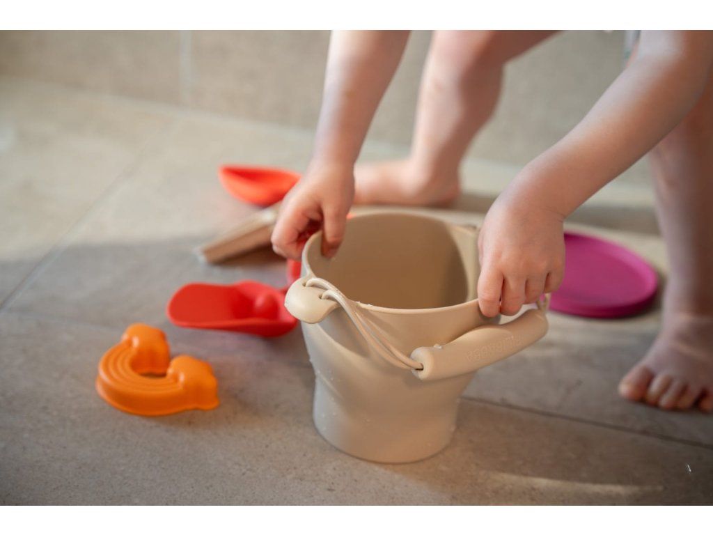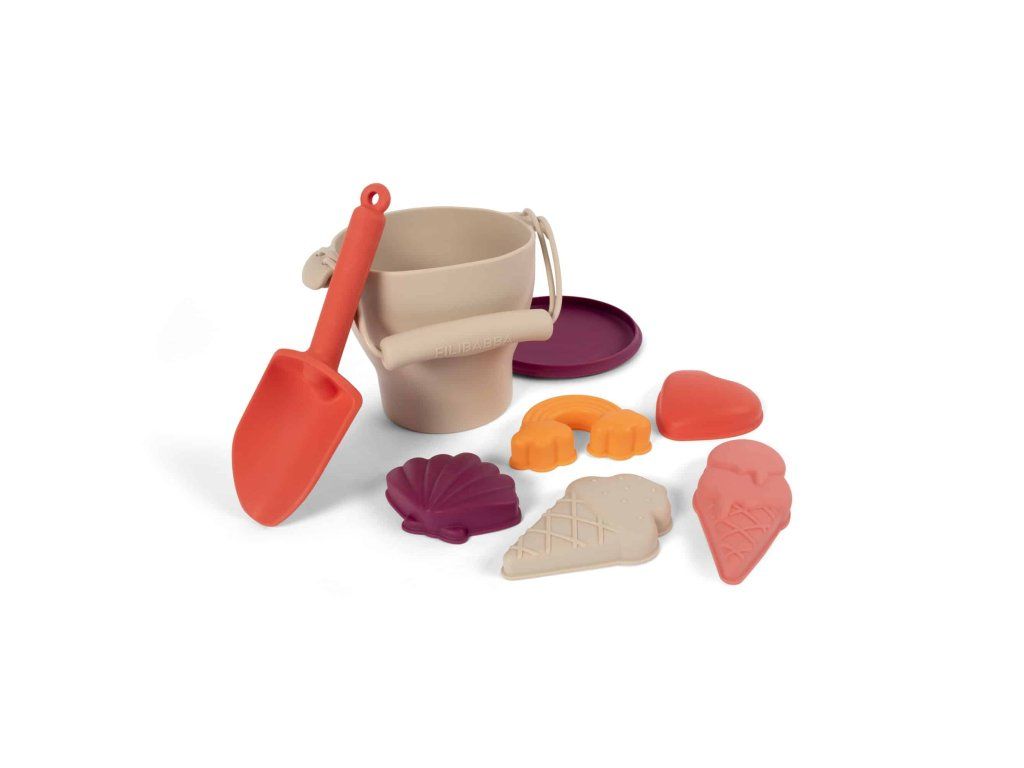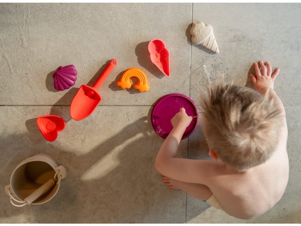 Plážová souprava v jasných barvách oceánu je stvořená pro všechny malé architekty, kteří rádi staví hrady z písku. Plážová sada je vyrobena z odolného silikonu a vaše dítě ji bude jemně držet v ruce.