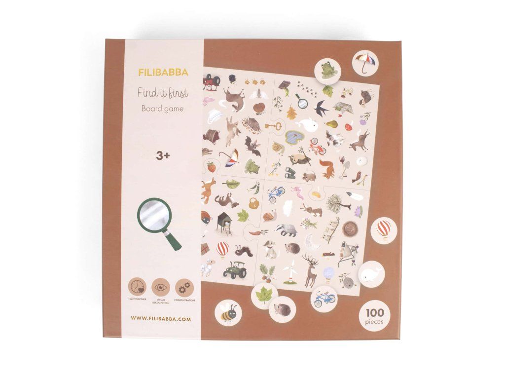 Vyzvěte celou rodinu na zábavnou hru plnou pozorování Kdo to najde první od FILIBABBA! Tato poutavá hra kombinuje rychlé myšlení a bystré oči, když hráči soutěží, kdo jako první najde shodné dlaždice na hracím plánu. Se 100 krásně ilustrovanými dlaždicemi s oblíbenými zvířátky a prvky FILIBABBA přináší hra smích a přátelskou soutěž přímo ke stolu.