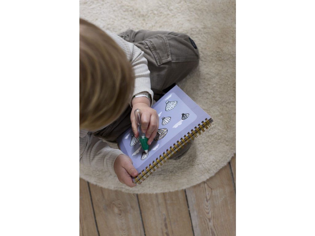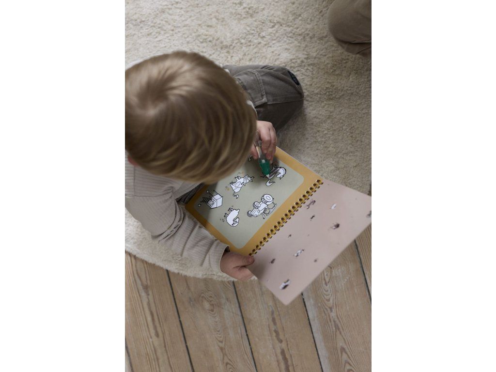 Tato skvělá omalovánka potěší mladé umělce prvky inspirovanými potisky FILIBABBA a zároveň rodičům poskytne pohodlí štětcového pera bez nepořádku.