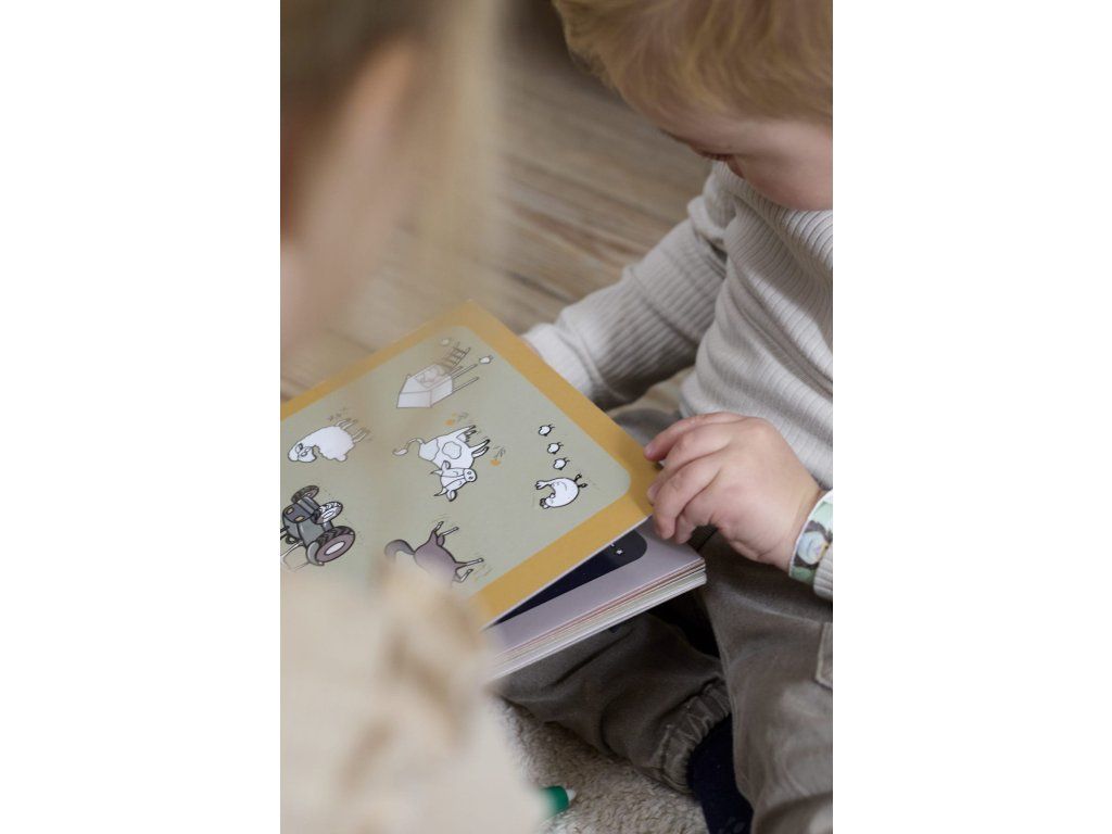 - 6 pevných kartonových stran s mnoha barevnými prvky