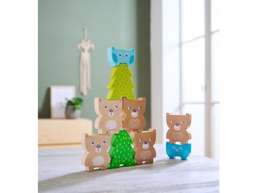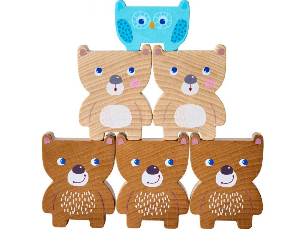Zveme všechny mladé mistry ve skládání! Vaším úkolem je pečlivě naskládat sovy, medvědy a stromy co nejvýše dokážete.