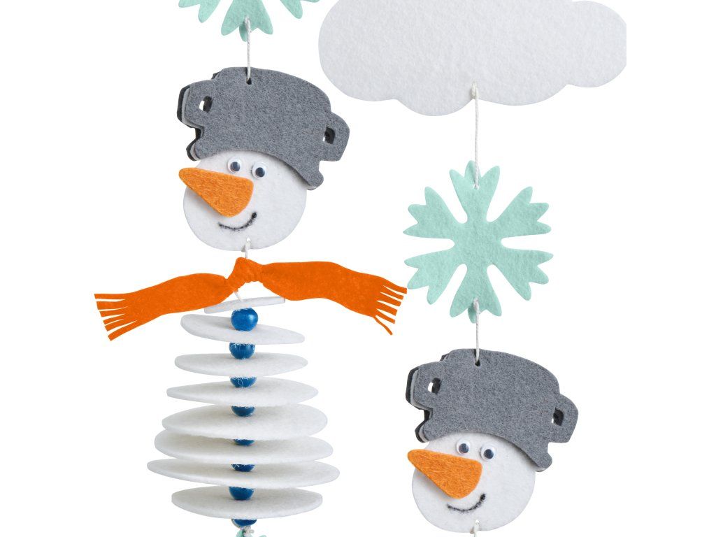 Naše kreativní sada První navlékání plstěná girlanda Sněhulák je ideální pro první pokusy s navlékáním pro děti od 3 let.