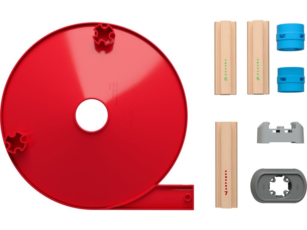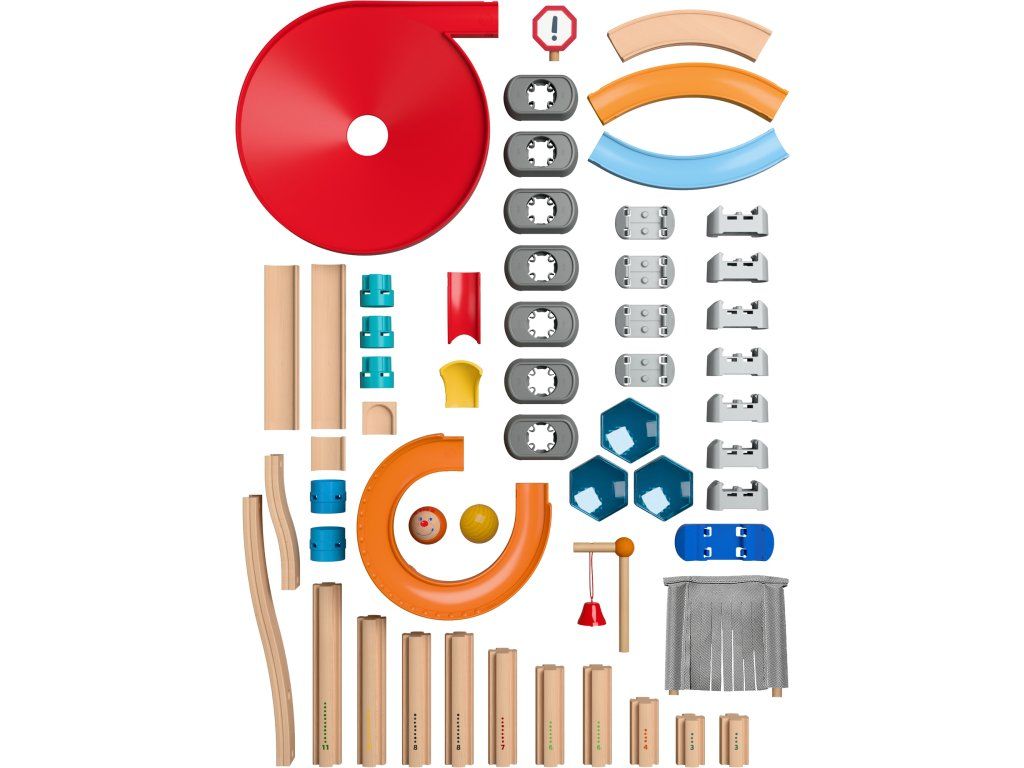 Krabice pro skvělou zábavu při stavění kuliček, a to i pro ty úplně nejmenší! 56 jednotlivých dílků a samotná krabice se dají poskládat a vytvořit tak nejméně 10 různých drah – vždy přizpůsobených aktuální vývojové fázi dítěte.