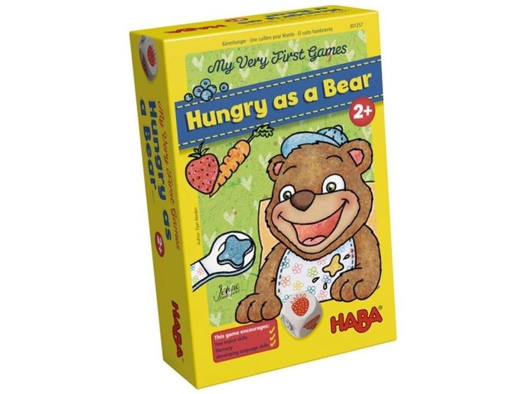 Připravte si porce jídla na talířek, hoďte kostkou a pomocí lžíce nakrmte medvídka podle toho, jaké jídlo se zobrazí na kostce.