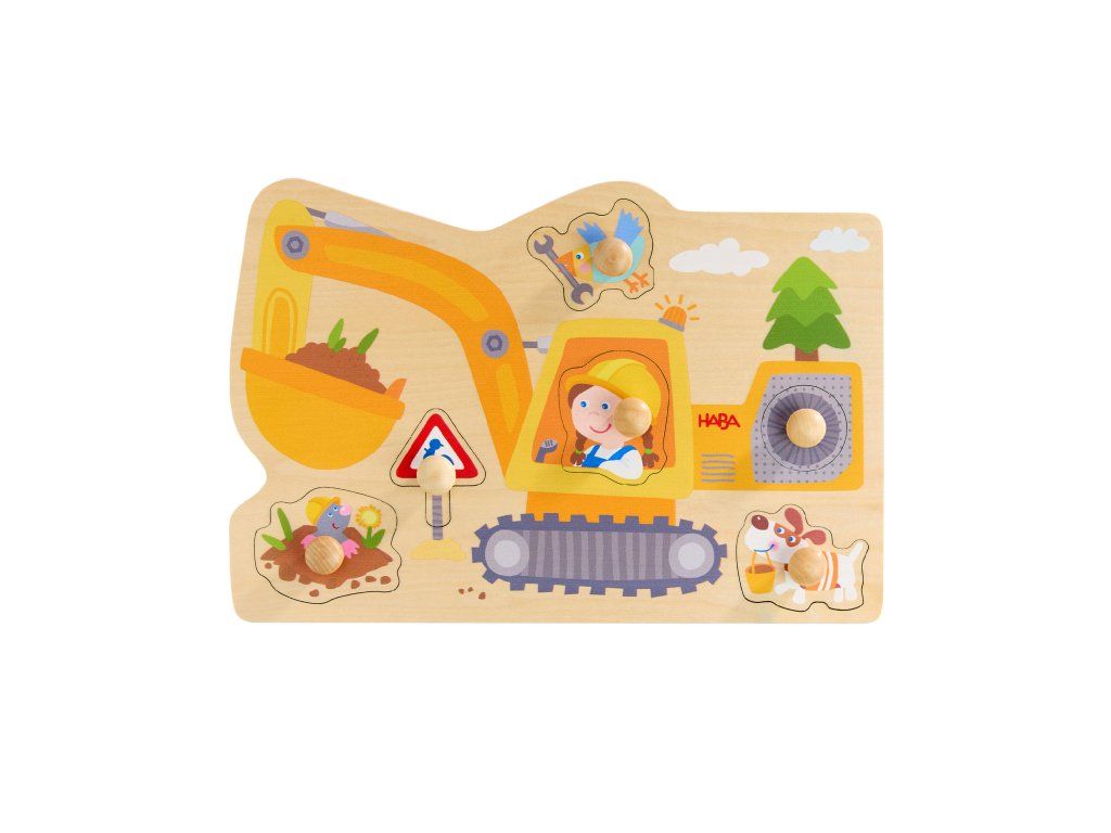 Velké dílky s dobře uchopitelnými dřevěnými úchytkami usnadňují skládání a přinášejí dětem rychlý pocit úspěchu.