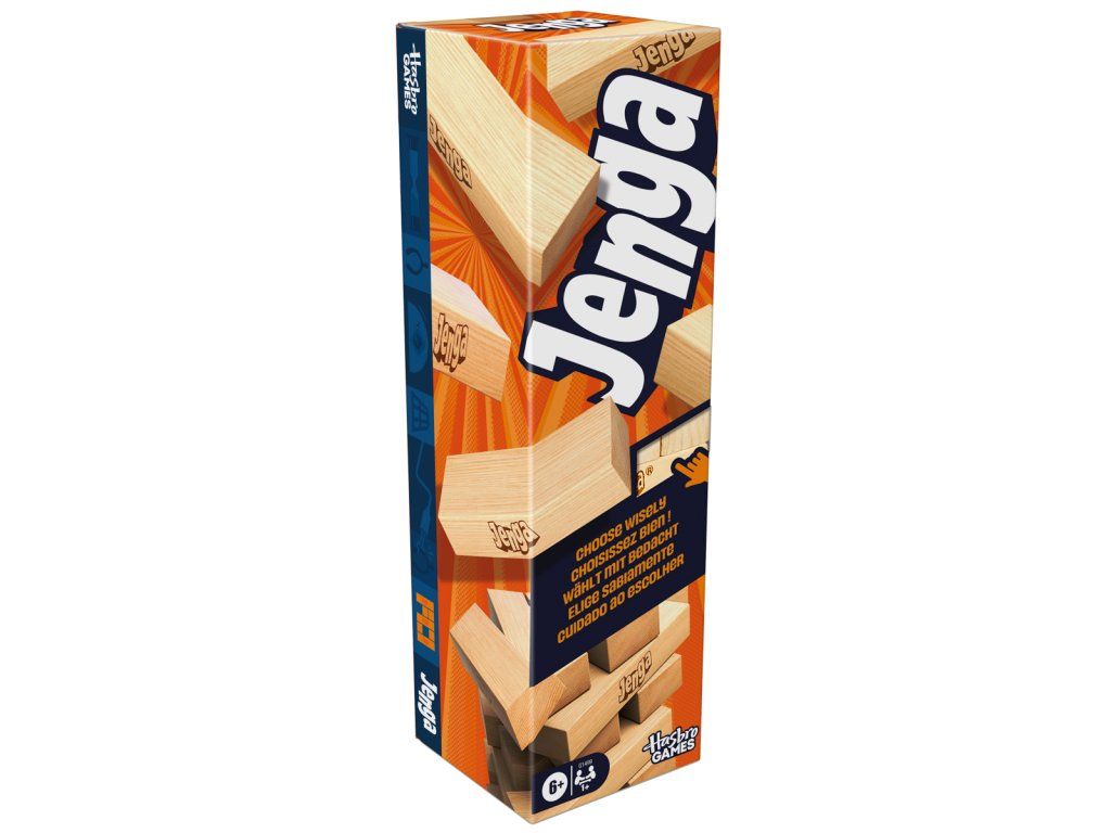 Hra Jenga je zábavná společenská hra pro 1 a více hráčů, kteří si chtějí otestovat svou trpělivost a šikovnost. Hra začíná postavením věže z 54 dřevěných kvádrů. Hráči se pak střídají ve vytahování kvádrů, musí však být opatrní, aby věž nespadla. Je dovoleno používat pouze jednu ruku a po vytažení kvádru jej hráč položí zpět na věž. Musí vždy dokončit jedno patro, než se začne stavět nové. Komu věž spadne, prohrává. Hra pomáhá v budování trpělivosti a zabavíte s ní celou rodinu. Nyní v rozšířené verzi s digitální kostkou, kterou naskenujte pomocí QR kódu v balení nebo postačí otevřít webovou aplikaci. V aplikaci jsou různé veselé výzvy. Jednou z výzev je akce „Spolupráce“, při které hráč, který hodí, vybere dalšího hráče, který bude působit jako jeho oči. Obsahuje 54 bloků Jenga z tvrdého dřeva, skládací pouzdro a návod. Pro 1 nebo více hráčů. Vhodné pro děti od 6 let. Rozměr balení: 27,6 x 7,9 x 7,9 cm.