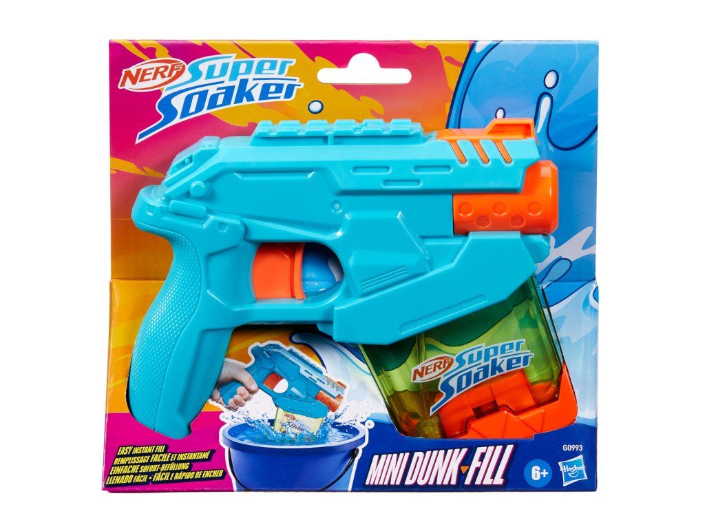 Vodní blaster Nerf Super Soaker Mini Dunk-Fill je vybaven nádržkou, která umožňuje rychlé a jednoduché plnění, takže můžete být během okamžiku připraveni na vodní dobrodružství. Díky inovativní konstrukci nádržky se voda napustí prakticky okamžitě – stačí jednoduše ponořit blaster do vody a sledovat, jak se ihned napustí. Transparentní nádrž má kapacitu až 100 ml. Stiskněte spoušť a vypusťte mokrou dávku vody. Vodní blastery Nerf Super Soaker jsou ideální venkovní hračky pro děti, které skvěle oživí každou letní aktivitu. Jsou perfektním dárkem, který motivuje k pohybu a zábavě na čerstvém vzduchu, a to s pořádným šploucháním! Vyrobeno z kvalitního plastu. Baleno v krabičce. Rozměr balení: 17,5 x 20,3 x 4,4 cm. Věk: 6+