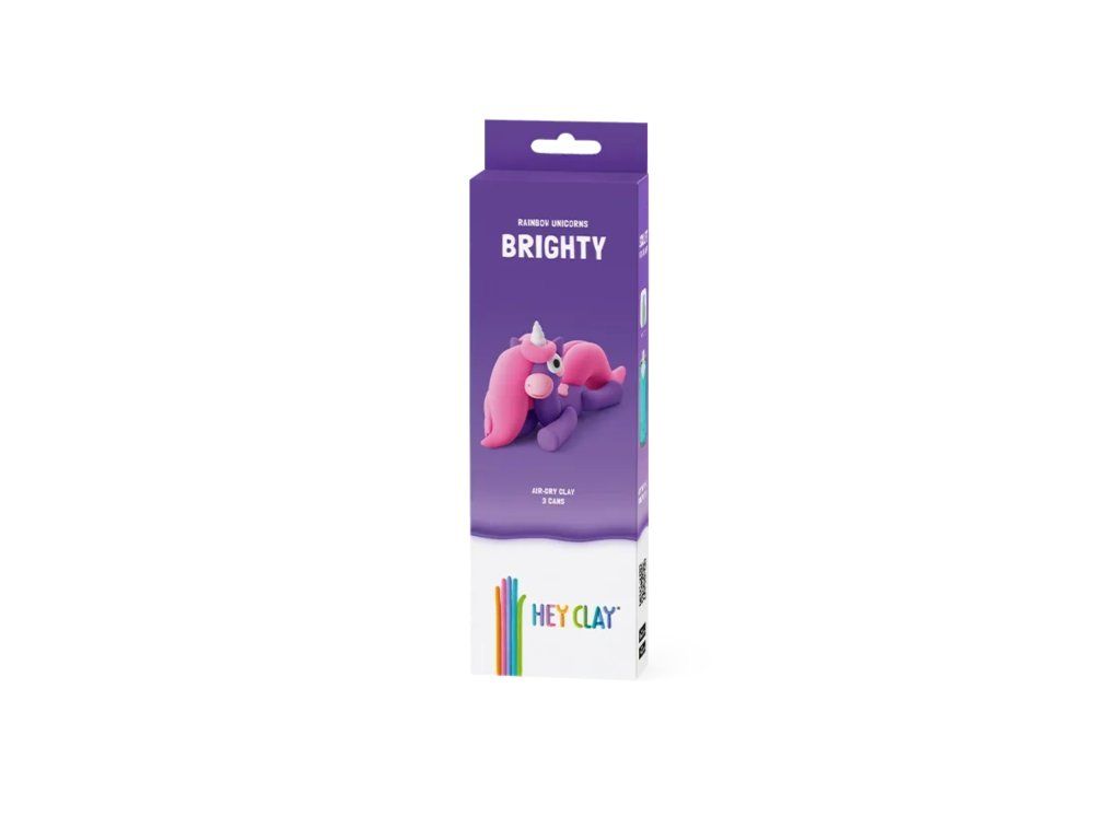 Hey Clay Jednorožec Brighty Vymodelujte si originální postavičku jednorožce Plastelína v pestrých barvách Hey Clay potěší každé dítě, které miluje svět kreativního tvoření - podporuje jemnou motoriku, představivost a umožní nekonečné formování. Po vymodelování stačí nechat postavičky zatvrdnout na vzduchu přibližně 24 hodin, čímž se promění v pevné figurky a jsou připraveny na další dobrodružství a hry.Tvoření se meze nekladou Barevný rozměr zábavy – obsahuje 3 nádoby s měkkou, jemnou a voňavou plastelínou Bezpečné složení – netoxická plastelína vhodná i pro nejmenší Podporuje rozvoj dovedností – modelování rozvíjí prsty a koordinaci Všestranné využití – na doma, do školy, na tvořivé dílny Přístupový kód do aplikace – děti se mohou inspirovat novými nápady Ideální dárek – pro předškoláky, školáky nebo kreativní rodinné chvíle