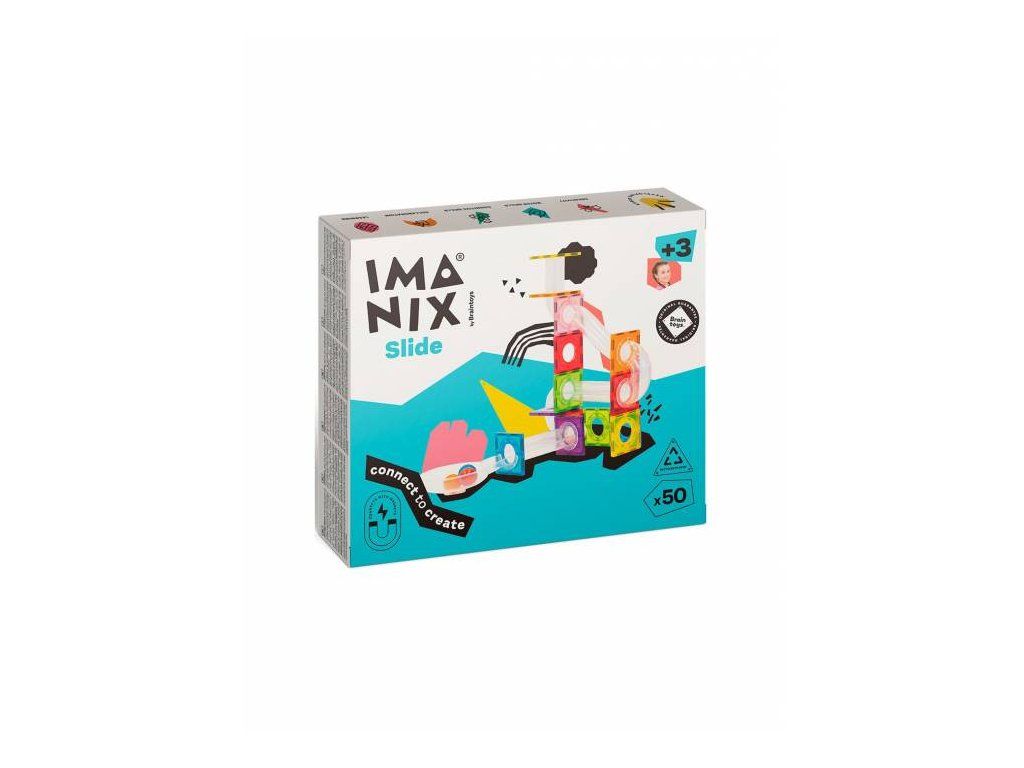 Magnetická stavebnice Imanix s 50 barevnými průsvitnými dílky a průhlednými skluzavkami pro vytváření kuličkových drah od Braintoys. S výběrem dílků, které obsahuje, můžete vytvořit nespočet okruhů a kuličkových skluzavek s úrovněmi, pády a labyrinty. Imanix umožňuje dětem stavět 2D a 3D tvary a popustit uzdu jejich fantazii a kreativitě. Díky barvám, tvarům a snadné manipulaci budou děti moci vytvářet nekonečné stavby (ploché postavičky, zvířátka, květiny, vozidla, věže, hrady). Kromě toho budou umět tvořit písmena, čísla, mnohoúhelníky, obrazce, zlomky, matematické operace. Dílky mají vnitřní výztuhy a silné, tlusté magnety, které umožňují pevné spojení a poskytují konstrukcím maximální stabilitu. Strany se nikdy neodpuzují. Jsou vyrobeny z ABS plastu, netoxické, bez BPA, latexu a toluenu, ultra odolné. Silné nýty zajišťují bezpečnost a zabraňují otevření dílků.