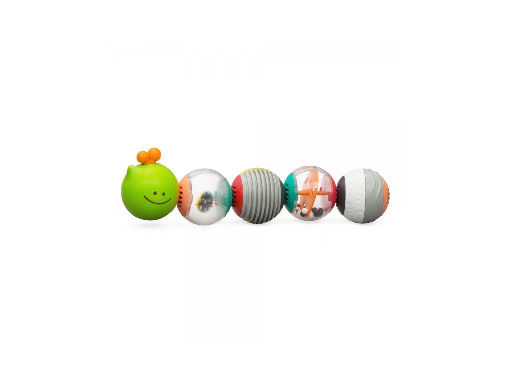 Roztomilá housenka je tvořena pěti míčky, které lze rozdělit a znovu spojit. Po rozpojení je možné si hrát i samostatně s jednotlivými míčky. Míčky chrastí a nabízejí různorodé textury ke zkoumání. Tykadla housenky slouží i jako kousátko.