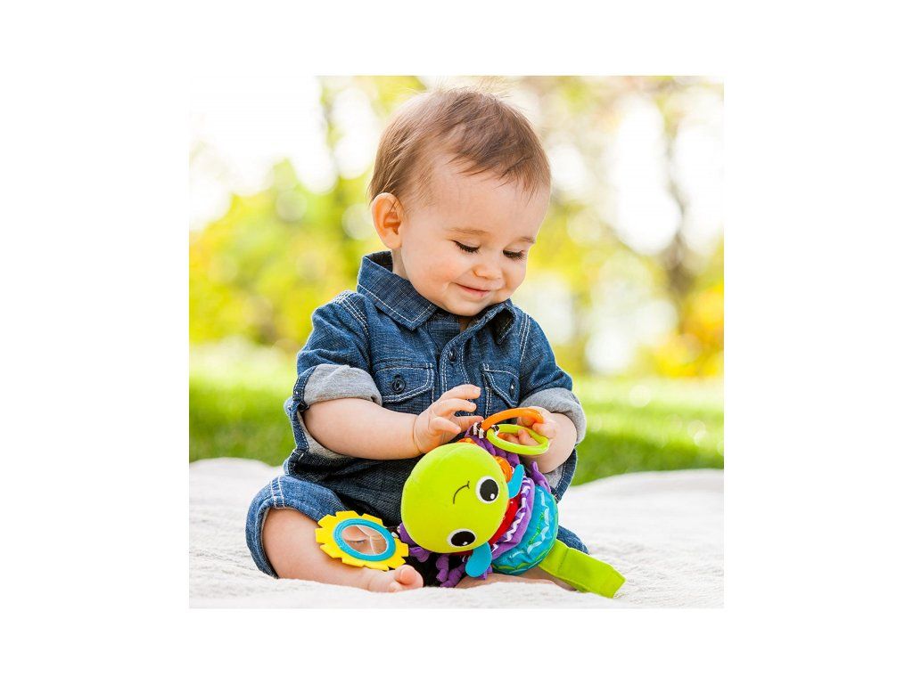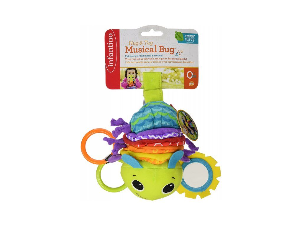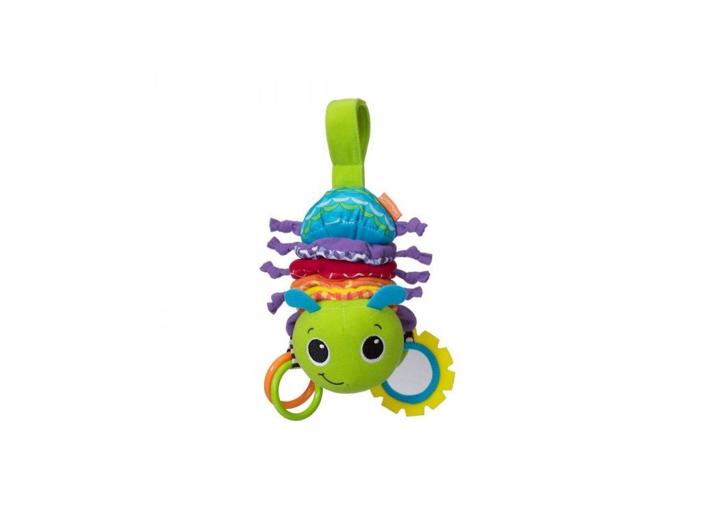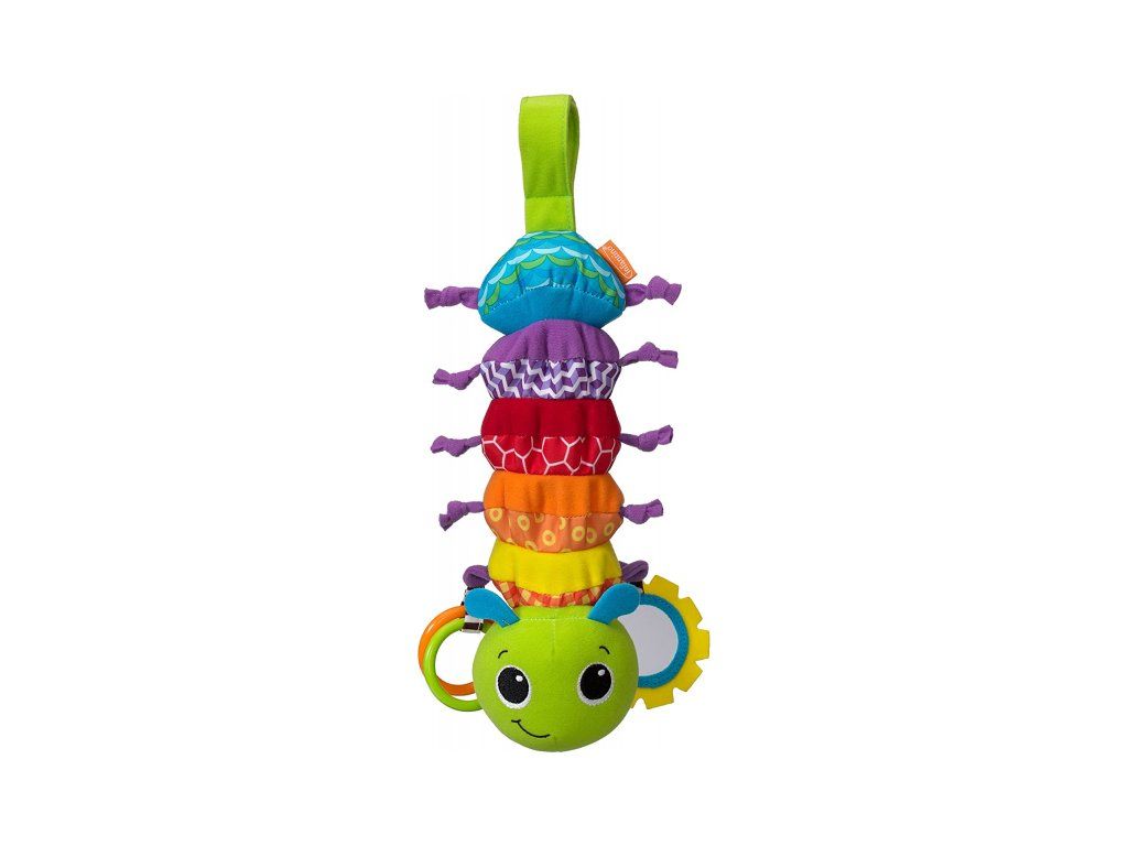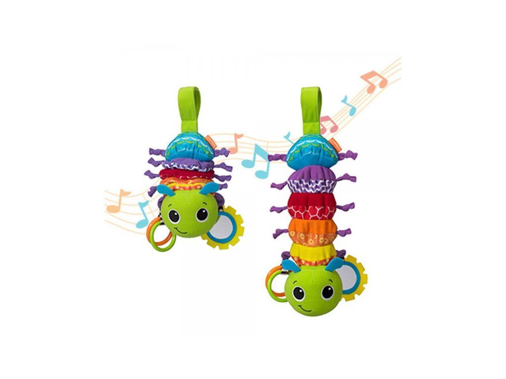 Neodolatelná housenka zabaví vaše dítě doma i na cestách! Po zatažení za kroužky se tělo housenky natáhne a začne hrát příjemnou ukolébavku. Pozornost dítěte upoutá i bezpečné zrcátko a různorodé textury pro prozkoumávání rukama i ústy.