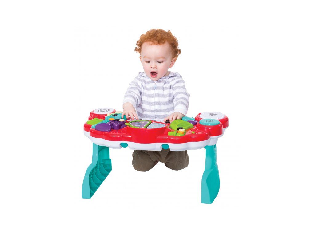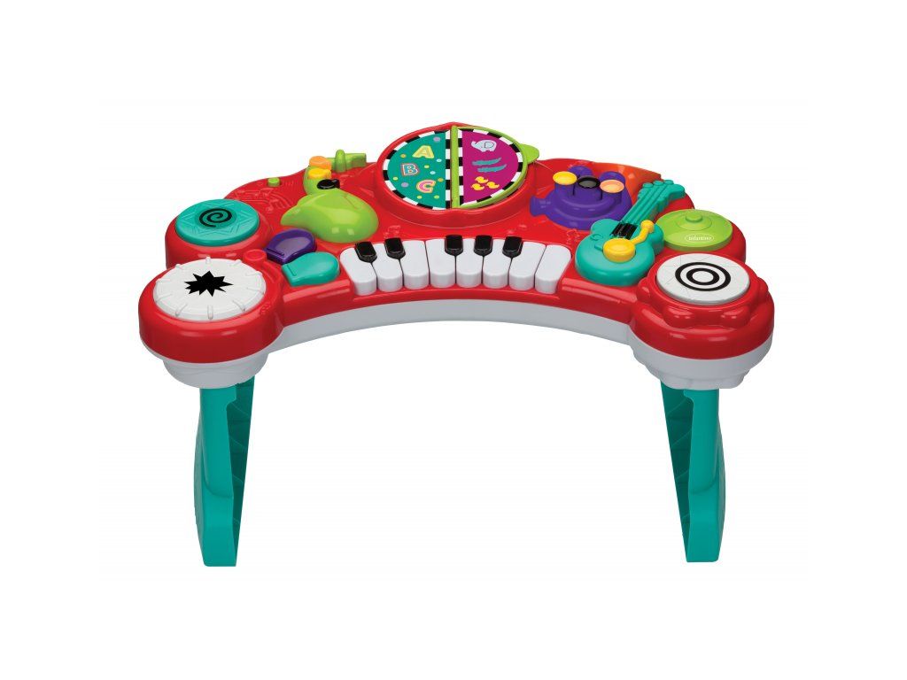 Hudební pult Infantino 10v1 dětem přibližuje hudbu již od raného věku. Pult nabízí 10 různých hudebních nástrojů včetně klávesů s velkými tlačítky pro snadné hraní malými dětskými prstíky. Součástí je i oboustranný „zpěvník“, který po otočení automaticky přehrává různé veselé skladby a rozšiřuje možnosti hraní. Pult přehrává více než 25 melodií a zvukových efektů.