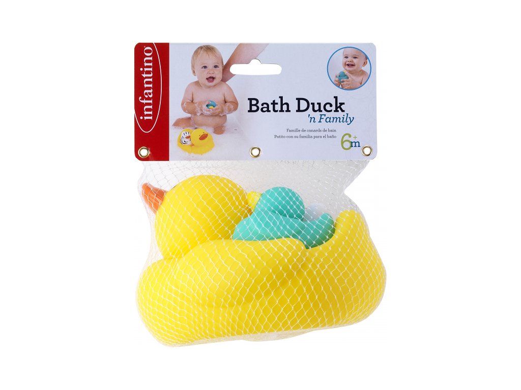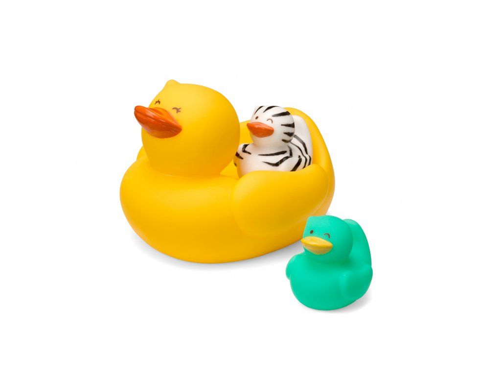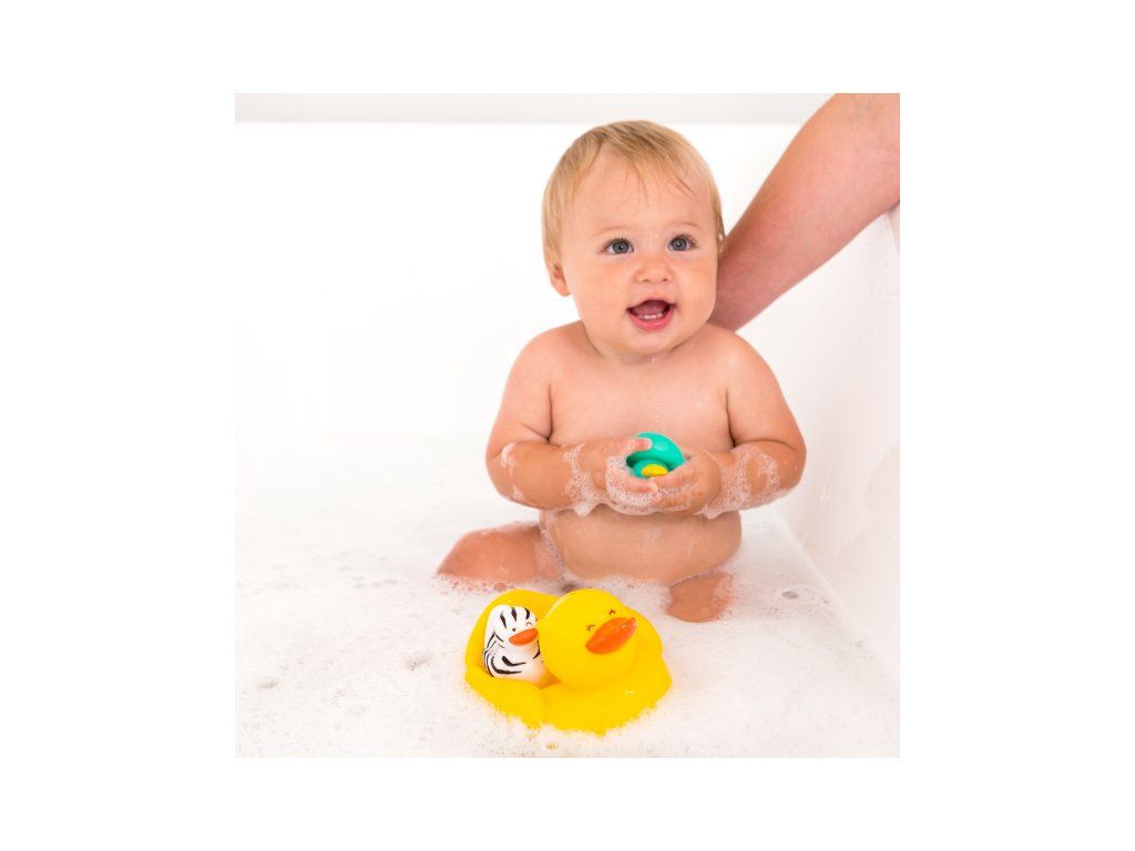 Kachní rodinku tvoří kachnička se dvěma káčátky. Kachnička dokáže plavat na hladině s oběma káčátky na zádech, ale kachna se umí pustit do vody i samostatně. Vymýšlejte spolu s dítětem během koupání příběhy, co všechno kachní rodinka na vodě zažívá a užívejte si společně příjemné chvíle před spaním.