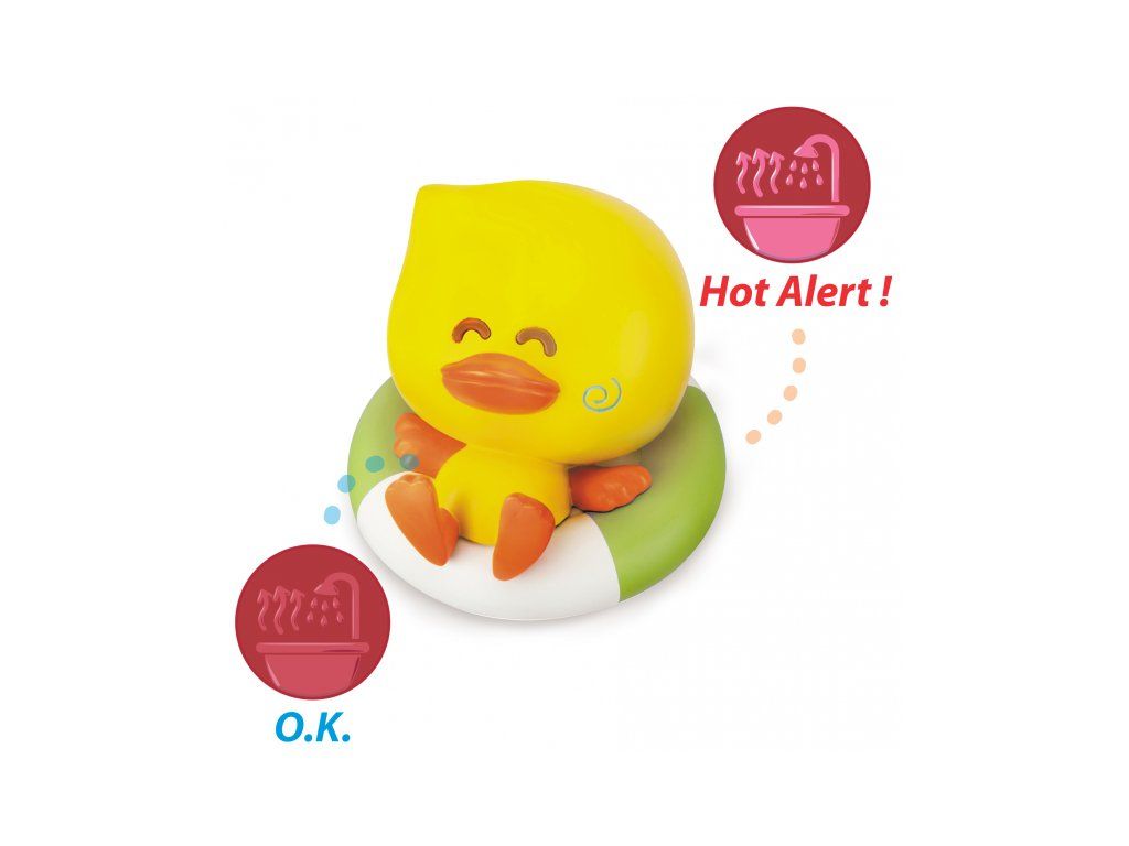 Rozkošná hračka do koupele v podobě kachničky je vybavena tepelným senzorem pro snadnou a rychlou kontrolu teploty vody ve vaně. Po vložení do příliš teplé vody se objeví kontrastní symbol na spodní části hračky, který vás upozorní, že teplota vody není optimální pro vložení dítěte.