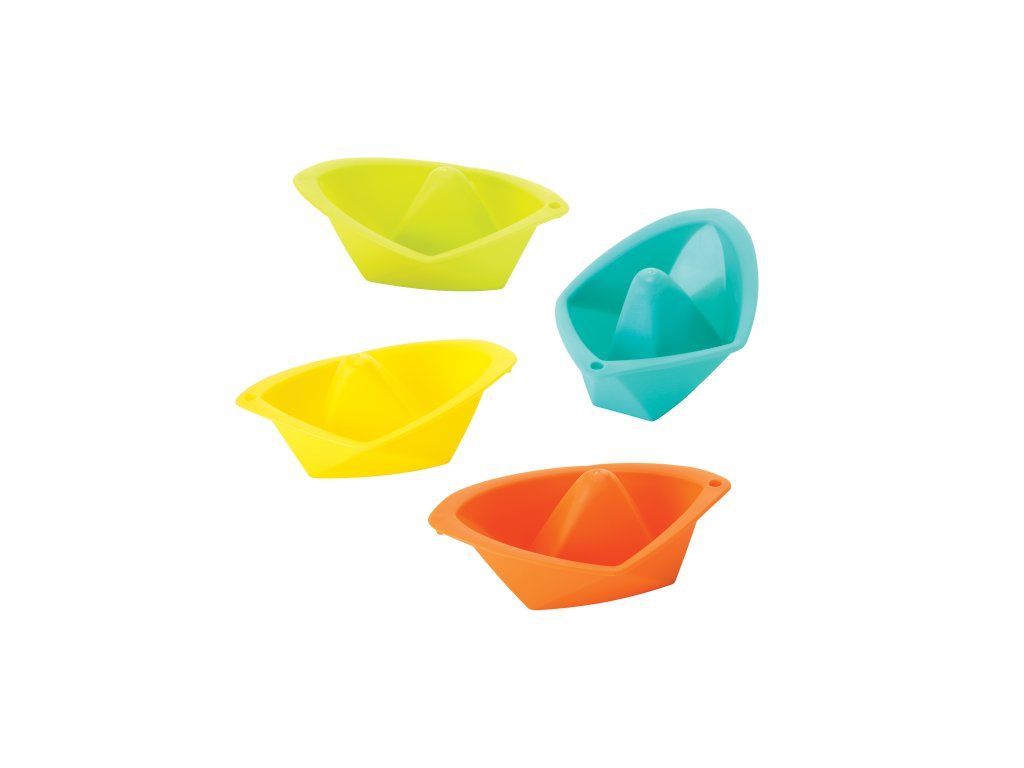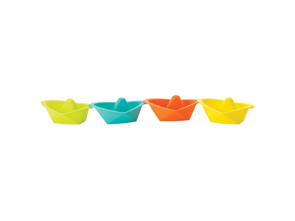 Sada čtyř lodiček na hraní ve vodě. Lodičky je možné vzájemně propojovat, skládat na sebe i nabírat s nimi vodu. Jednoduchá hračka, která zabaví vaše dítě během koupání každý den.