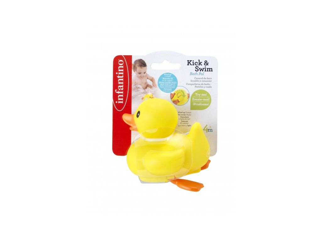 Rozkošná kachnička po natažení kope nožičkami a plave po hladině. Neodolatelná hračka do vany i do bazénu.