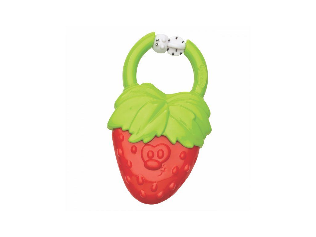 Kousátko s různými texturami pro prozkoumávání v ústech při stlačení jemně vibruje a masíruje tak dítěti citlivé dásně při prořezávání prvních zoubků. Pohyblivá beruška na držadle kousátka nabízí další texturu pro prozkoumávání rukama i ústy.