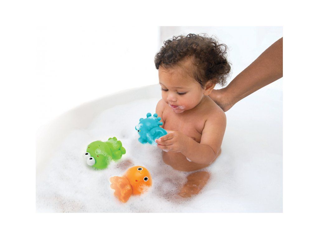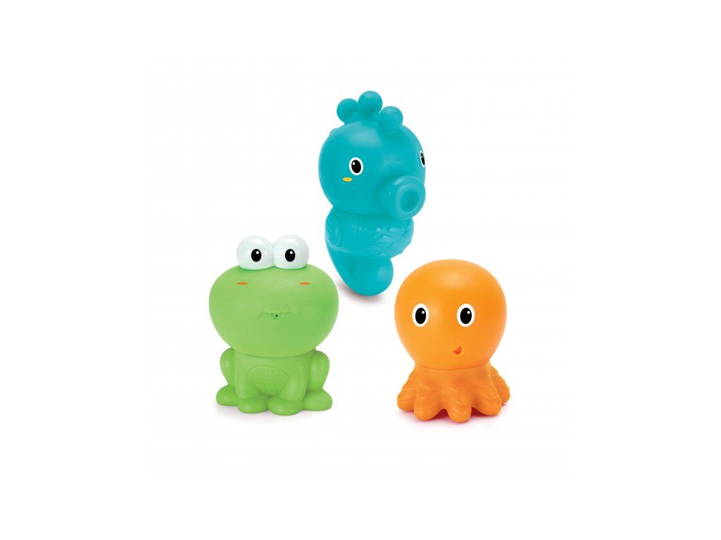 Tři dvojdílné šroubovací figurky mořských živočichů – chobotnice, žáby a mořského koníka – zajistí vašemu dítěti spoustu zábavy při koupání. Horní a spodní díly postaviček lze spolu libovolně kombinovat a vytvářet tak pokaždé jiné figurky. Při stisknutí figurky stříkají vodu pro ještě více zábavy ve vaně.