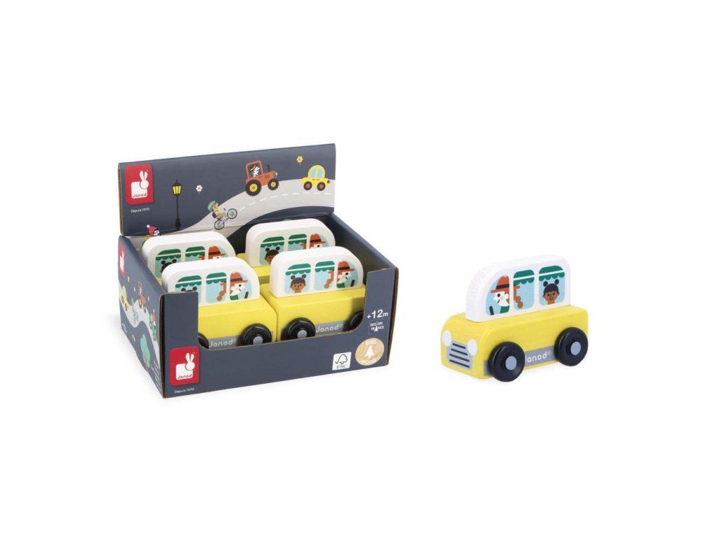 Janod Cross roads Dřevěné auto na tlačení Dodávka žluté