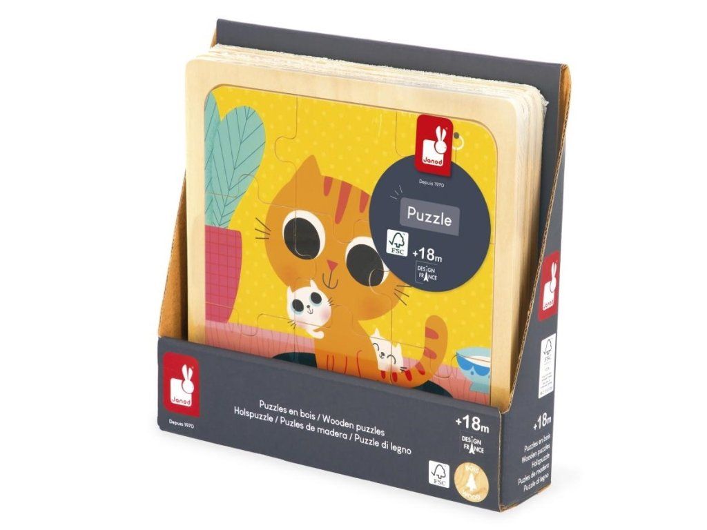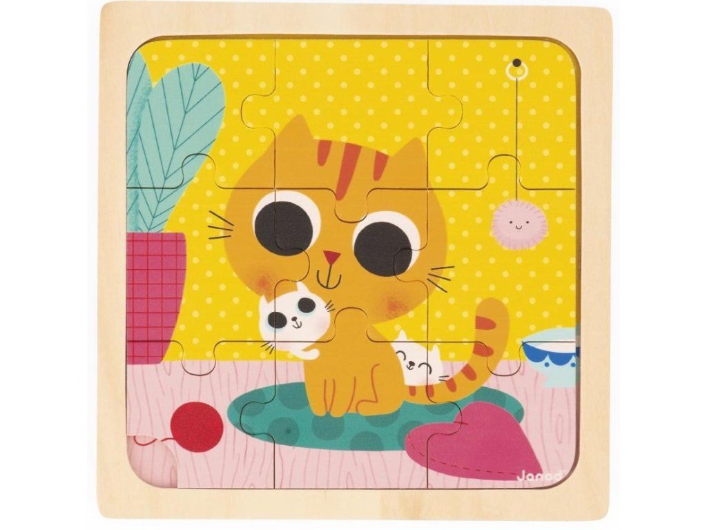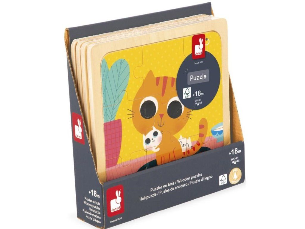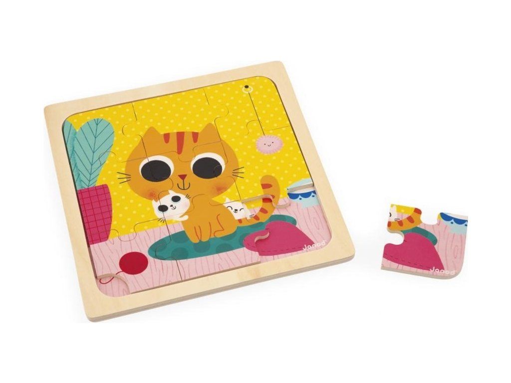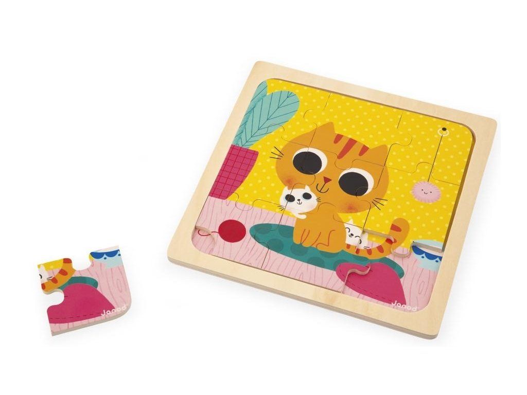 Janod Dřevěné puzzle s předlohou pro nejmenší Kočka 9 ks