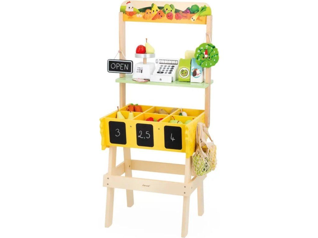 Trh malých výrobců je otevřený! Náš dřevěný farmářský trh je ideální hračka pro děti od 3 let, které si zamilují hraní na vlastní podnikání.