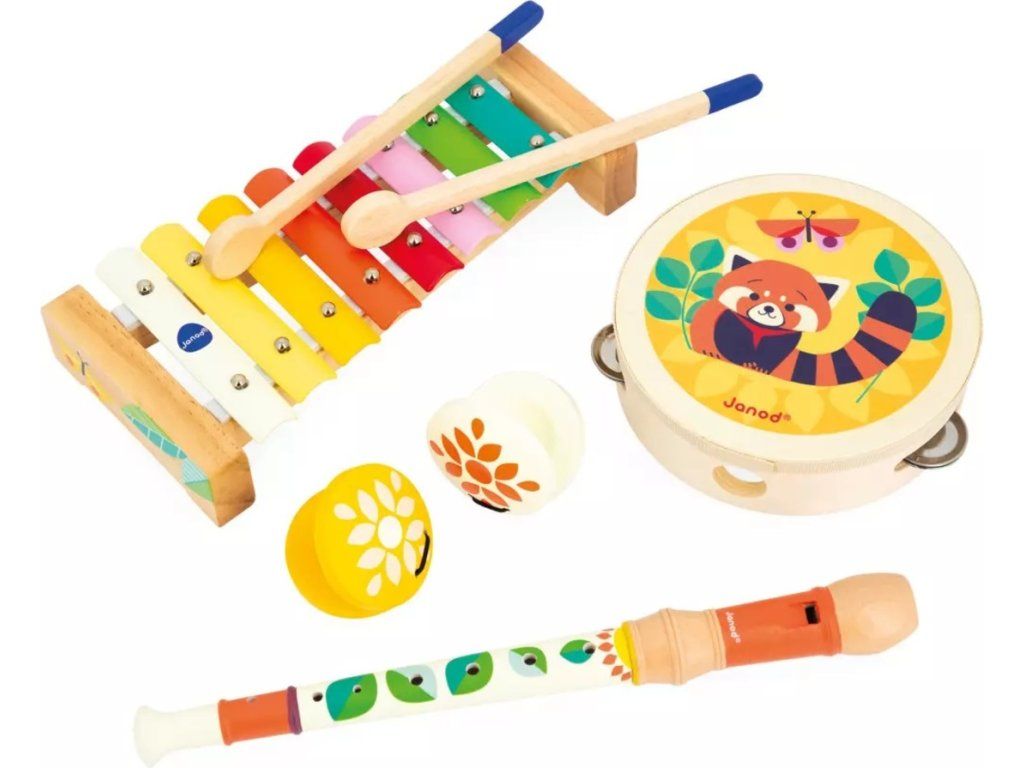 Janod Gioia Dřevěná sada hudební nástroje flétna-tamburína-xylofon-kastaněty