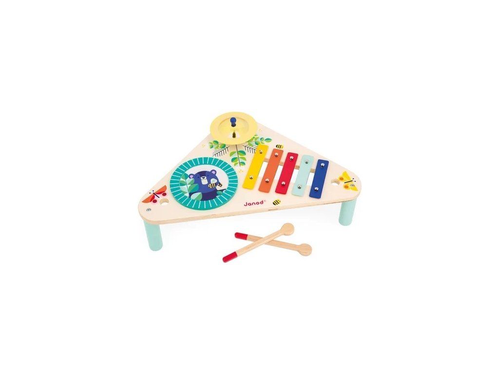 Janod Gioia Dřevěný hudební stolek xylofon-buben-činely