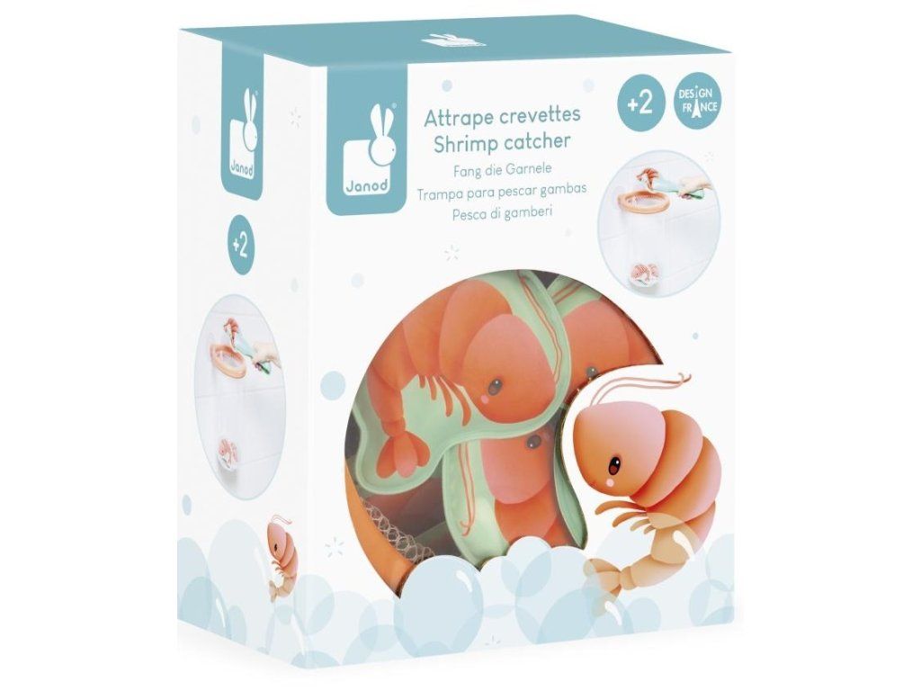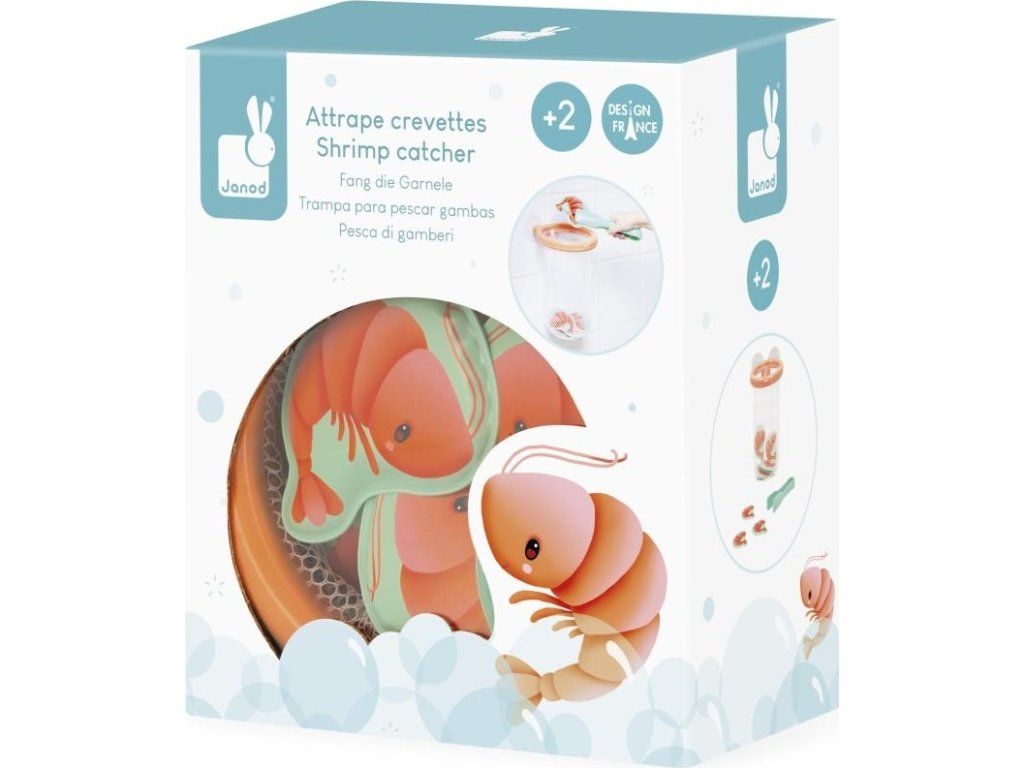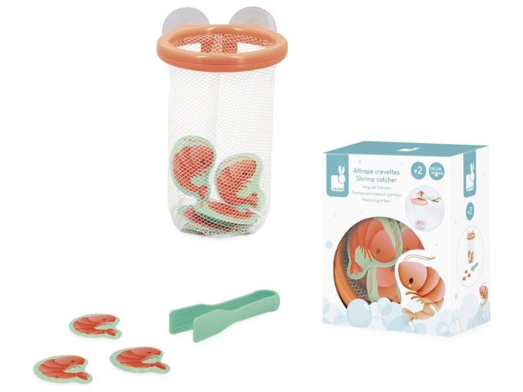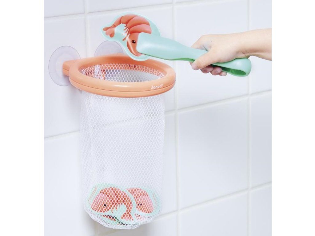 Pomocí malých kleští může vaše dítě chytit každou krevetu, která plave na hladině vody, a umístit ji do pěkného košíku, který se pomocí přísavek přichytí na dlaždice.