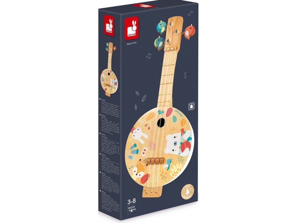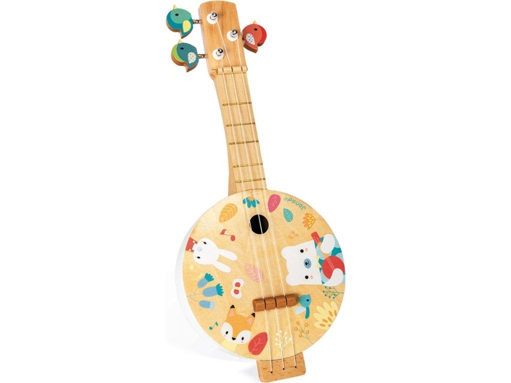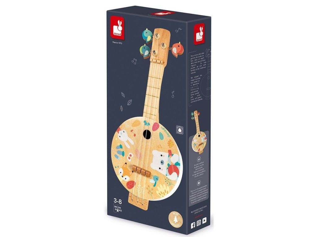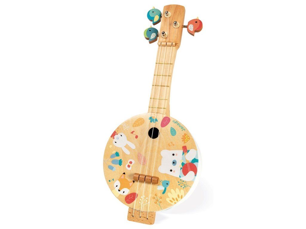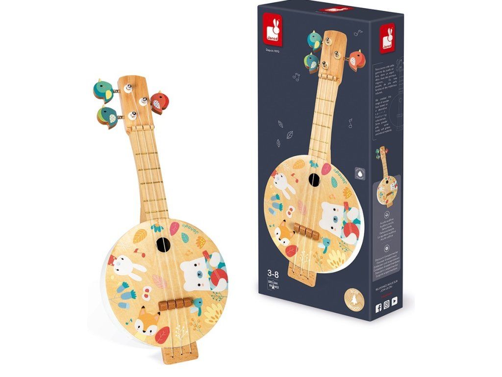 Dřevěná kytara-banjo pro děti Janod série Pure, probuzení smyslů vašich dětí a dopřejte jim radost z hudební improvizace!