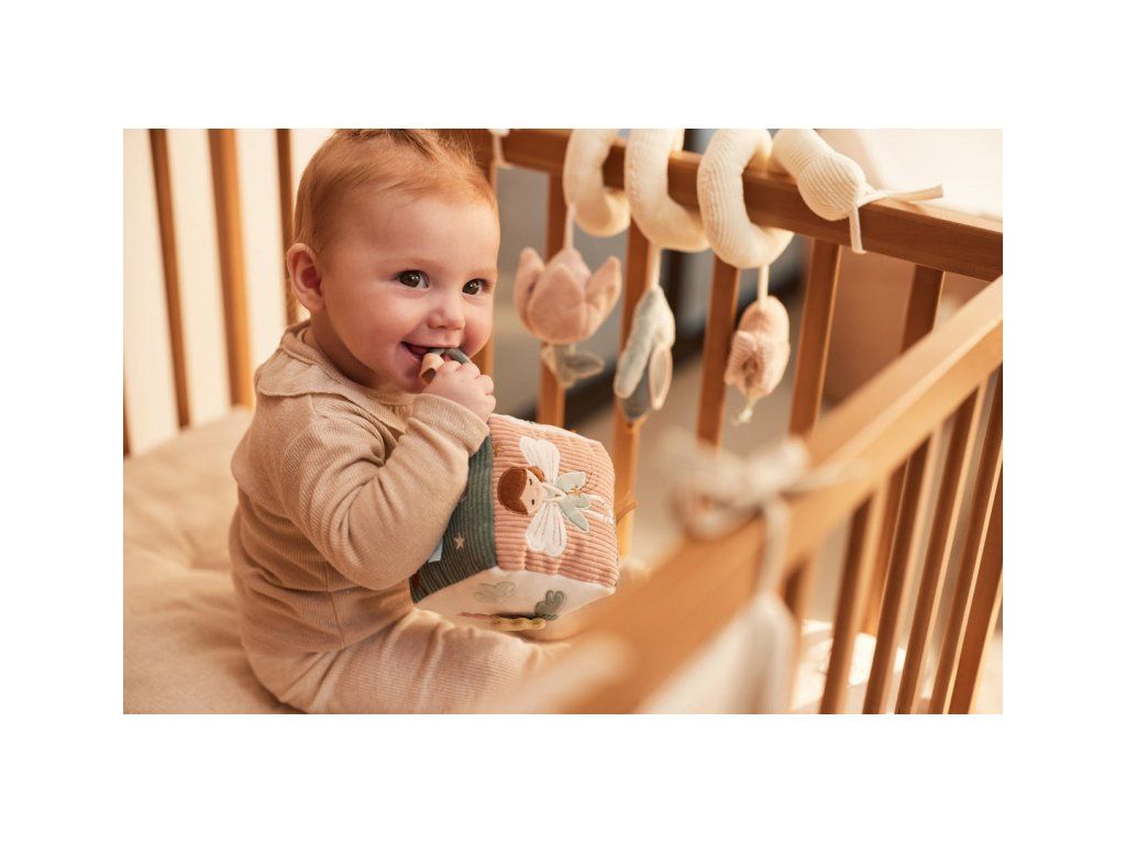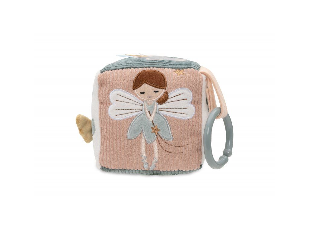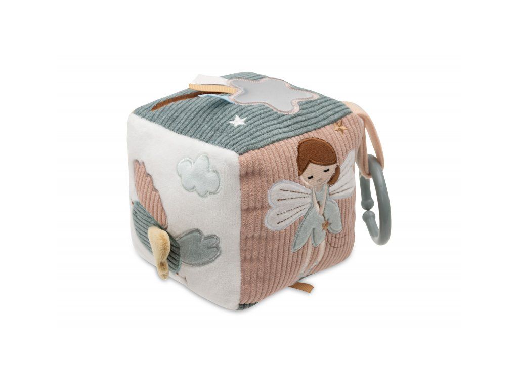Měkká plyšová kostka s krásnými přírodními a pohádkovými motivy je díky svému provedení snadno uchopitelná malými dětskými ručičkami. Rozmanité textury a vyšívané ilustrace lákají dítě ke zkoumání.