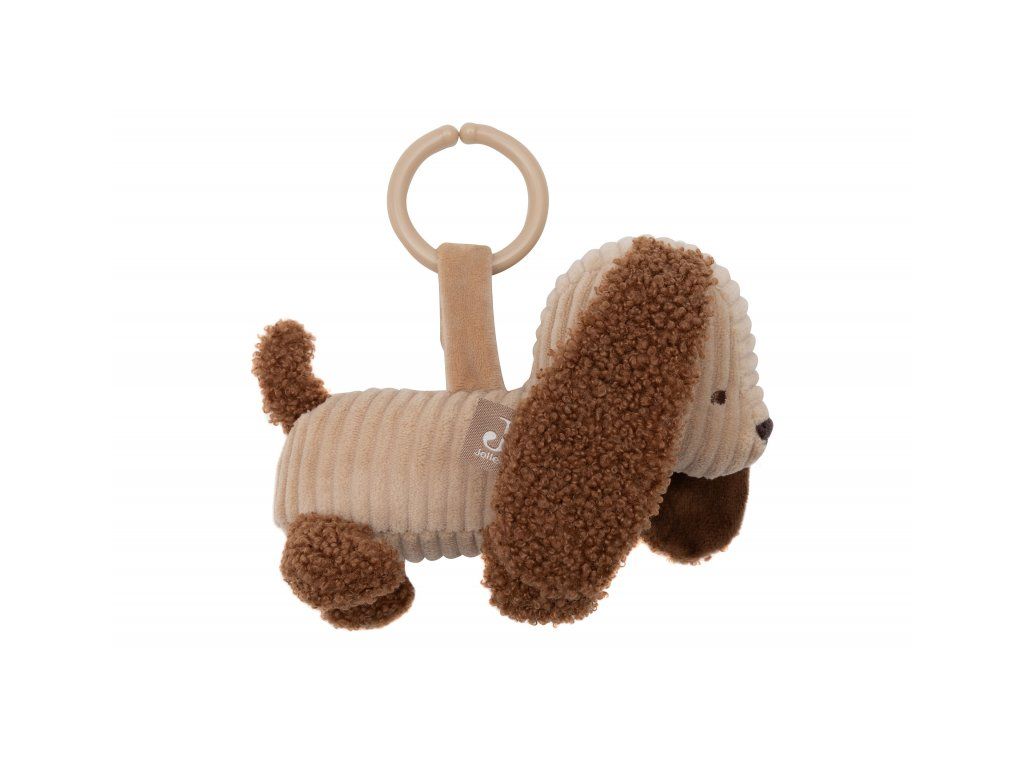 Rozkošný závěsný psík Diego z měkké žebrované látky s buklé detaily je ideálním společníkem pro vaše miminko na procházkách a výletech. Díky plastovému kroužku ho snadno připevníte na kočárek nebo autosedačku.