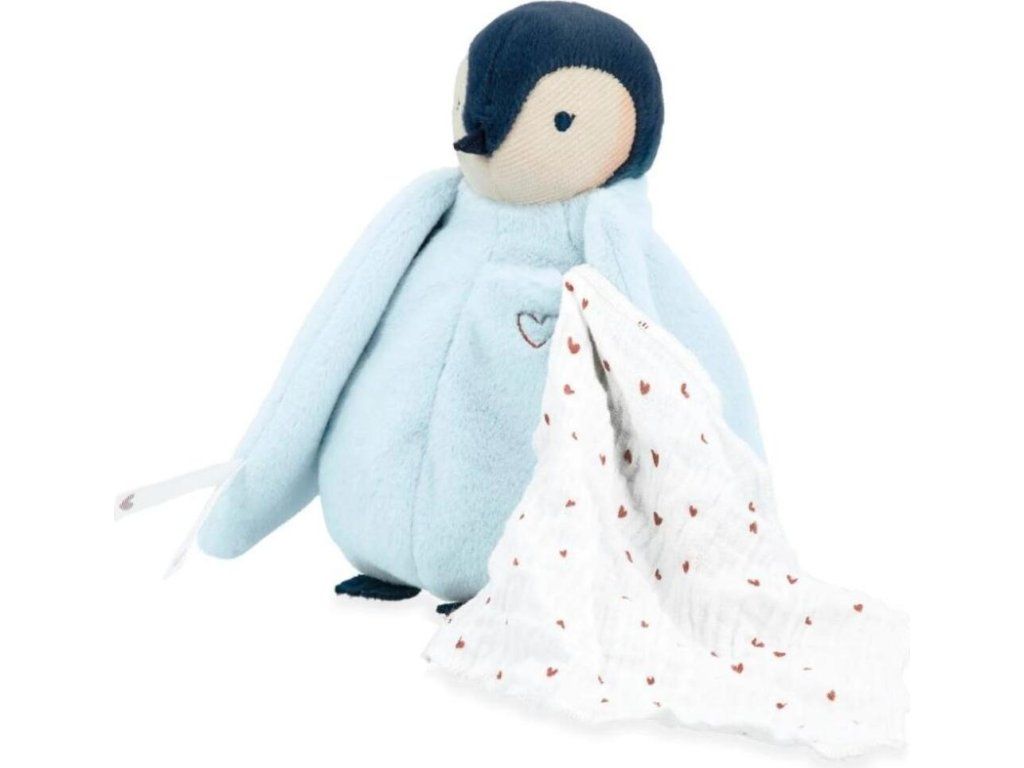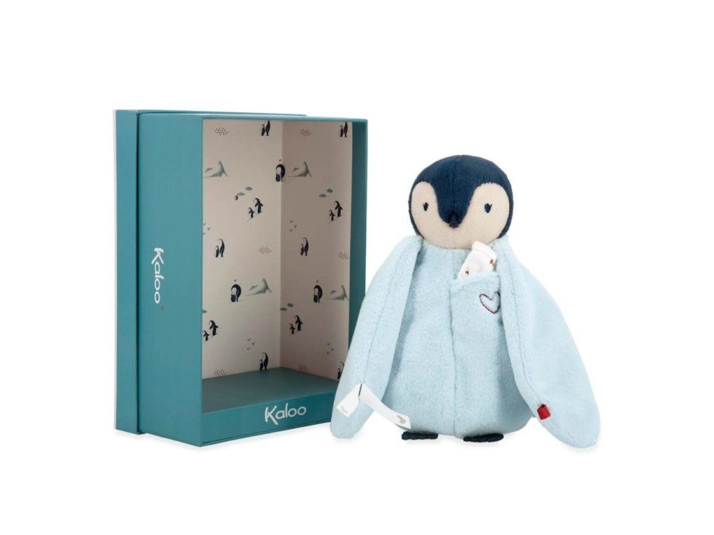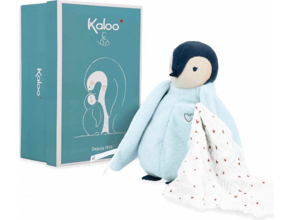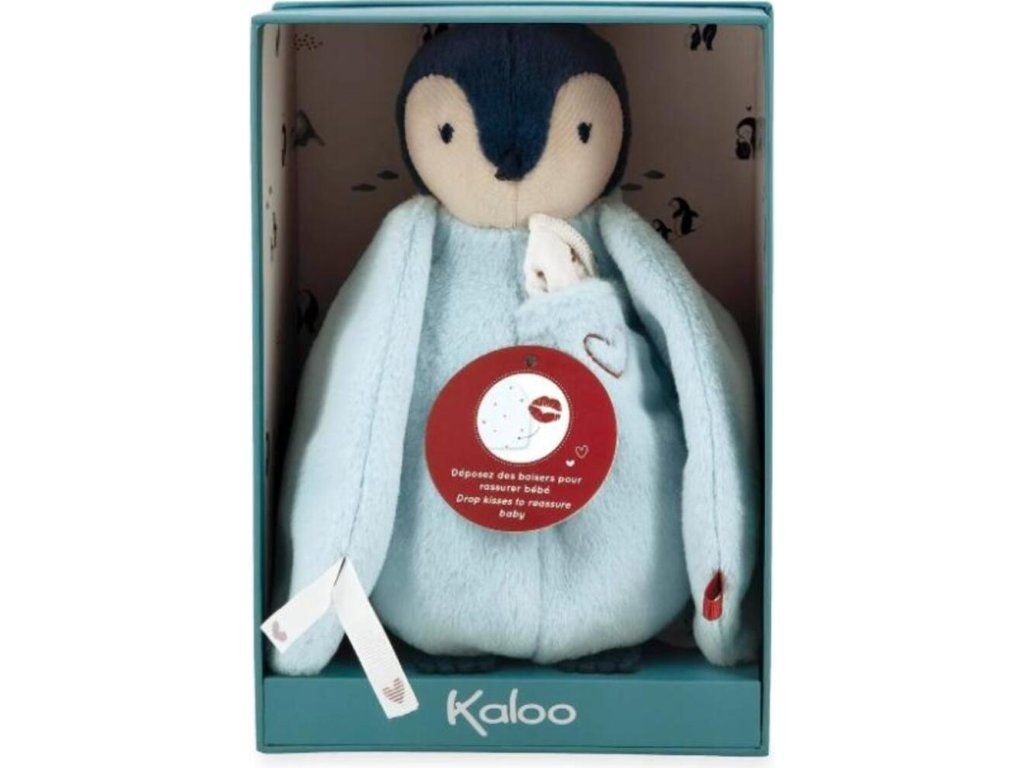 Tento plyšový tučňák s měkkým bříškem je dodáván s kapesníčkem, který je ideální pro zanechání polibku nebo vůně rodičů a tím uklidnění miminka již od narození. Pro malé dítě může být těžké se odloučit od rodiče, a proto Kaloo navrhlo tuto plyšovou hračku s tučňákovým polibkem: příjemná na dotek a mazlení, nabízí malou, snadno dostupnou kapsičku na přední straně, kde je našitý pěkný bavlněný mušelínový kapesníček.